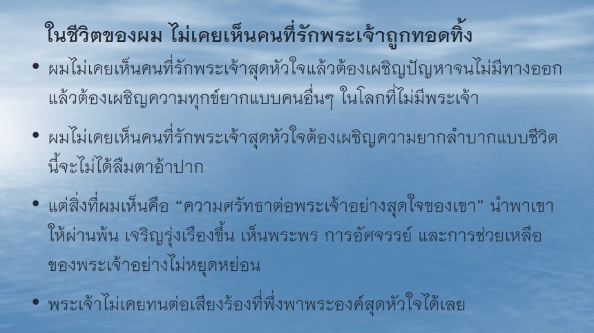 ขอให้เราทุกคนไว้วางใจพระเจ้าเสมอในทุกสถานการณ์