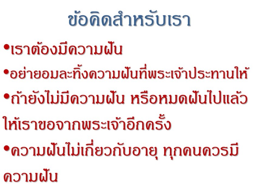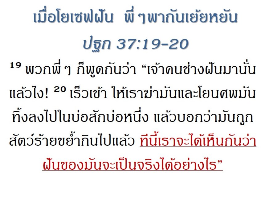 หลัก 4 ประการสู่ชีวิตที่ครบบริบูรณ์แบบโยเซฟ ตอนที่ 1 ฝัน