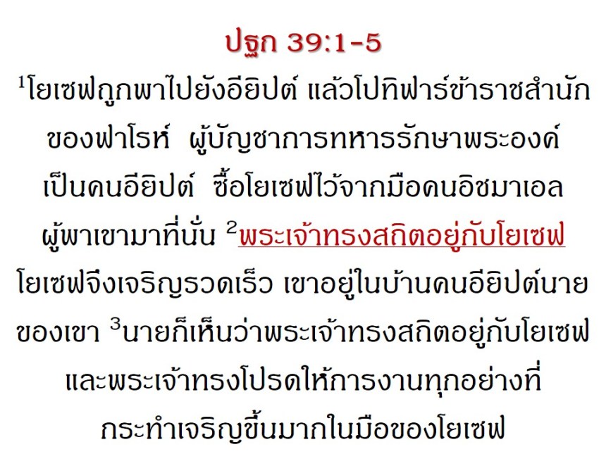 แต่สุดท้ายพระเจ้าได้ยกชูชีวิตของเขาขึ้นเป็นใหญ่เหนือแผ่นดินอียิปต์ เป็นรองเพียงฟาโรห์เท่านั้น