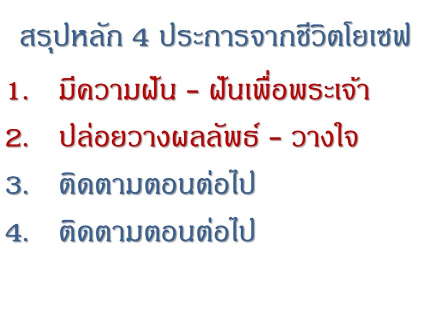 หลัก 4 ประการสู่ชีวิตที่ครบบริบูรณ์แบบโยเซฟ ตอนที่ 2 ปล่อยวางผลลัพธ์