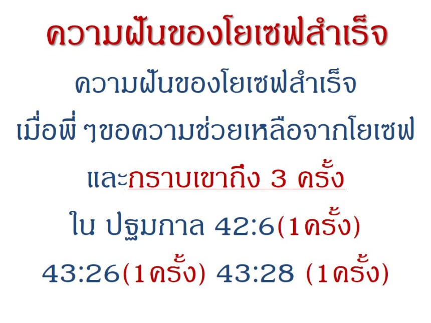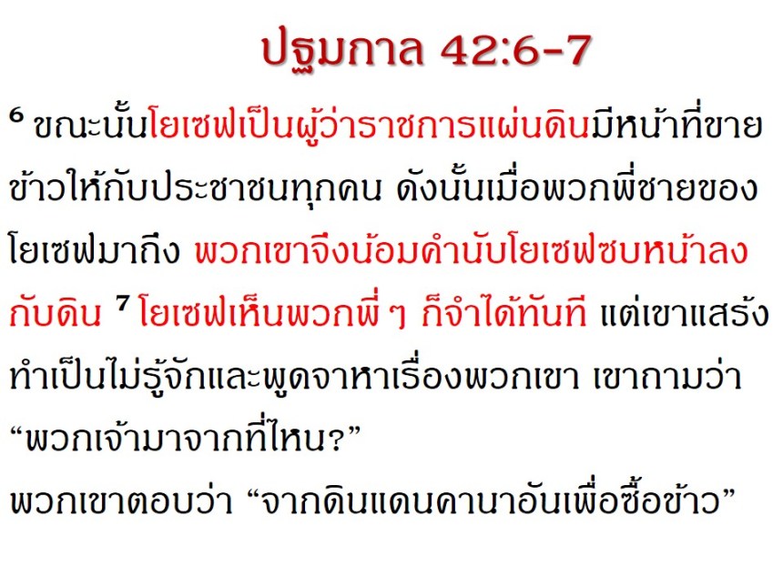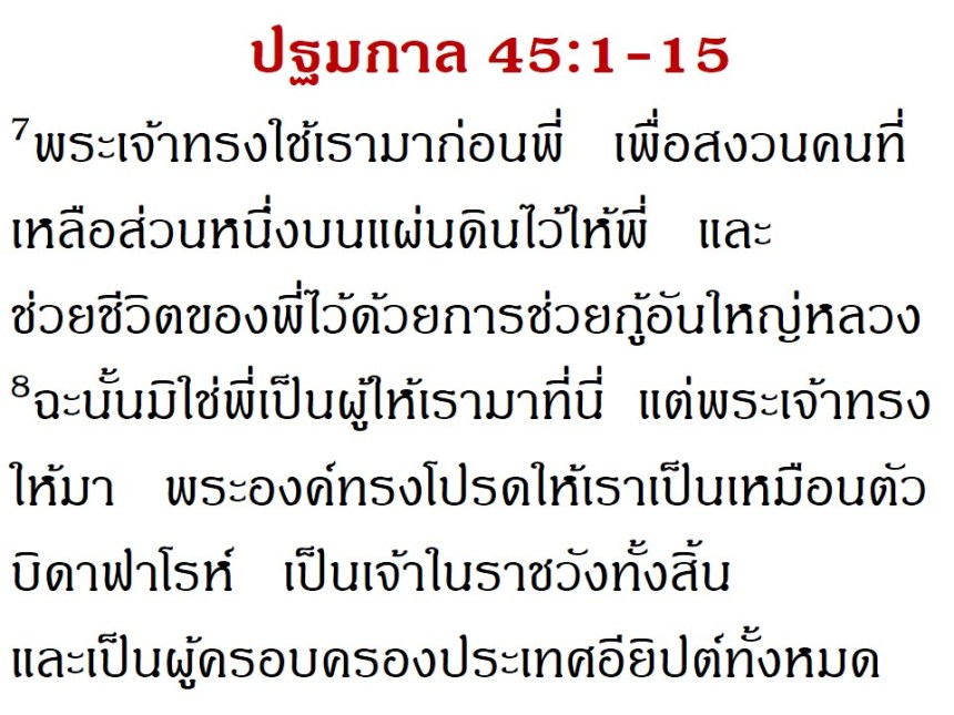 แต่สุดท้ายพระเจ้าได้ยกชูชีวิตของเขาขึ้นเป็นใหญ่เหนือแผ่นดินอียิปต์ เป็นรองเพียงฟาโรห์เท่านั้น