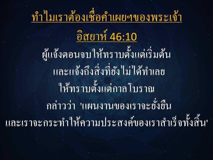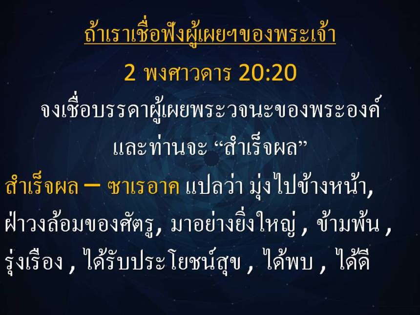 จงเชื่อบรรดาผู้เผยพระวจนะของพระองค์ แล้วท่านจะได้รับความสำเร็จ”