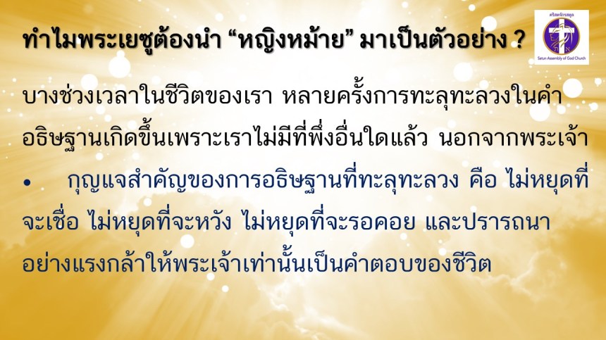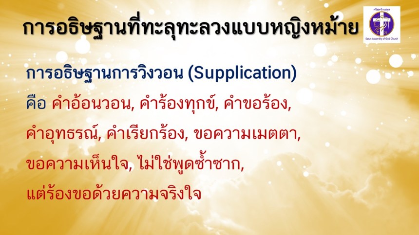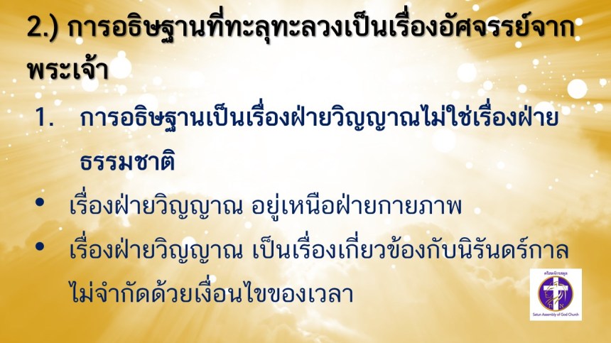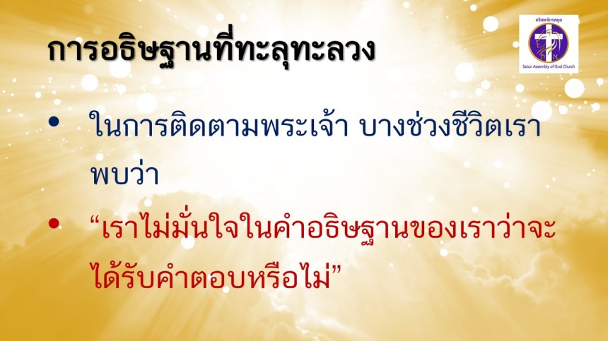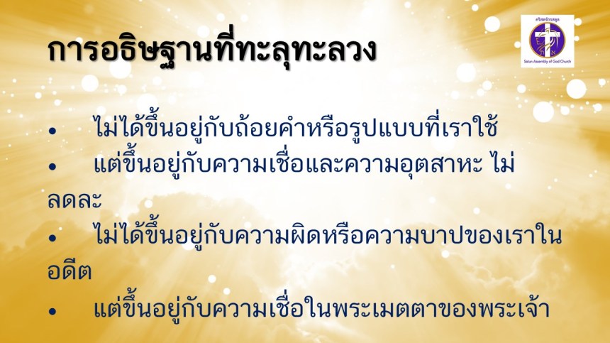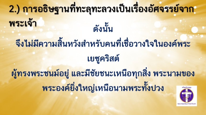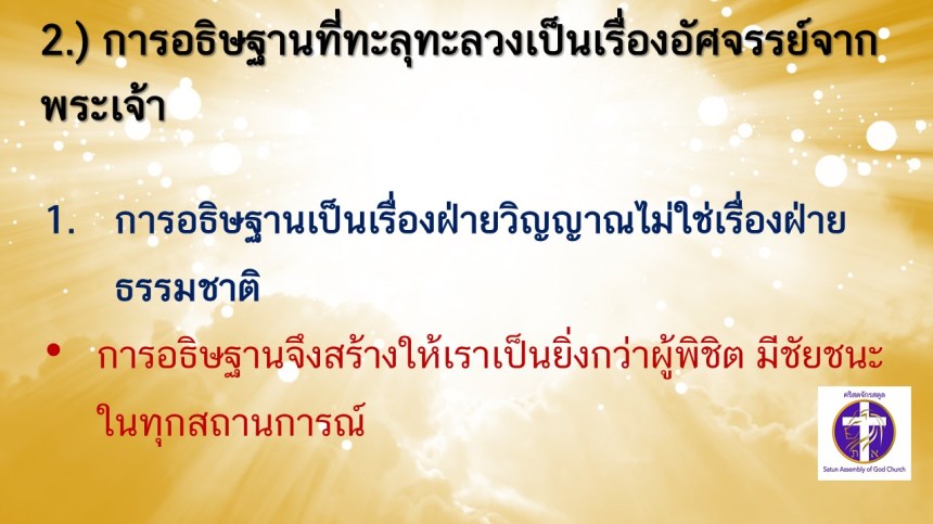 การอธิษฐานที่ทะลุทะลวง คำเทศนาโดย ศจ.ดร.สมหมาย แสงสว่างสัจกุล http://www.SatunAssembly.com :: พระเยซูจอมกษัตริย์ โปรดเสด็จกลับมา Even so come King Jesus! แบ่งปันสิ่งนี้: แชร์บน X(เปิดในหน้าต่างใหม่) X แชร์บน Facebook(เปิดในหน้าต่างใหม่) เฟซบุ๊ค ถูกใจ กำลังโหลด... ที่เกี่ยวข้อง