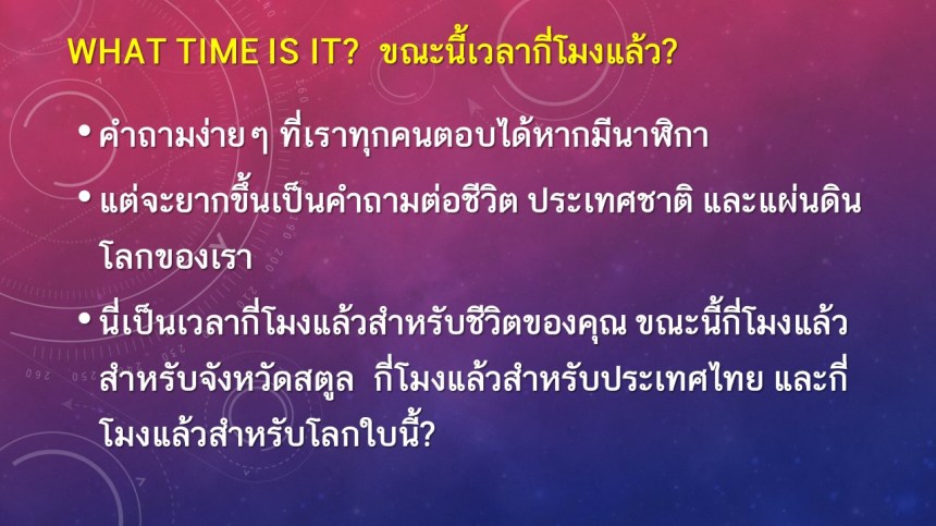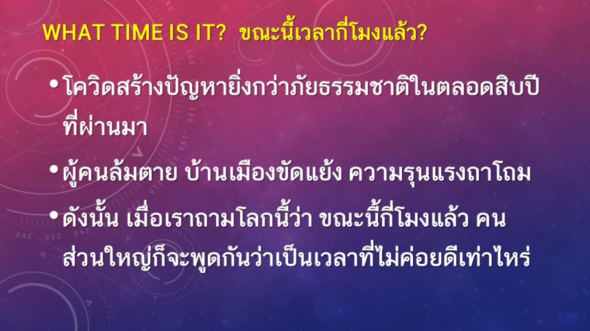 What time is it? ขณะนี้เวลากี่โมงแล้ว? คำเทศนาโดย อ.ไชโย (Rev.Kiel Downey) http://www.SatunAssembly.com :: พระเยซูจอมกษัตริย์ โปรดเสด็จกลับมา Even so come King Jesus! แบ่งปันสิ่งนี้: แชร์บน X(เปิดในหน้าต่างใหม่) X แชร์บน Facebook(เปิดในหน้าต่างใหม่) เฟซบุ๊ค ถูกใจ กำลังโหลด... ที่เกี่ยวข้อง