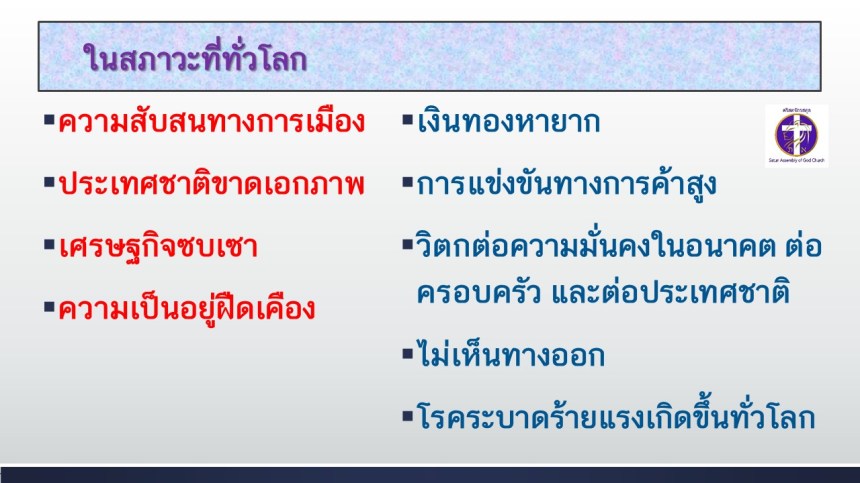 คำเทศนาโดย ศจ.ดร.สมหมาย แสงสว่างสัจกุล