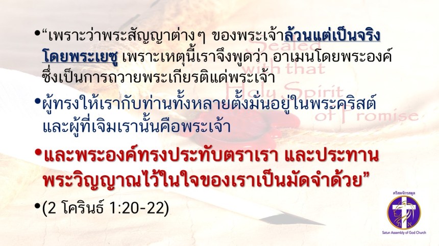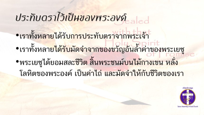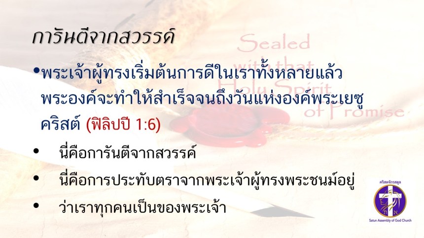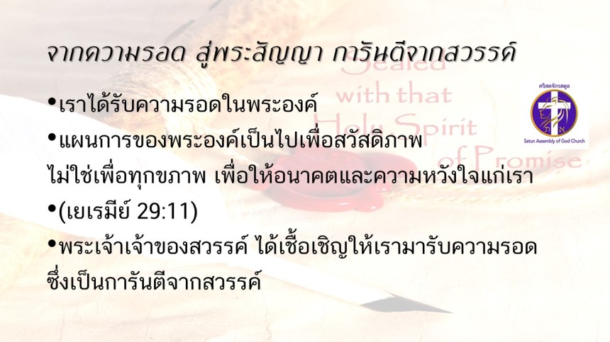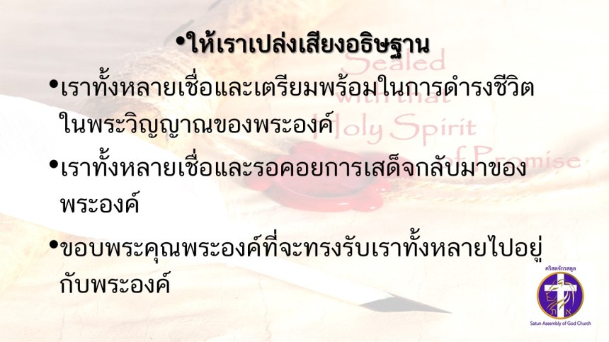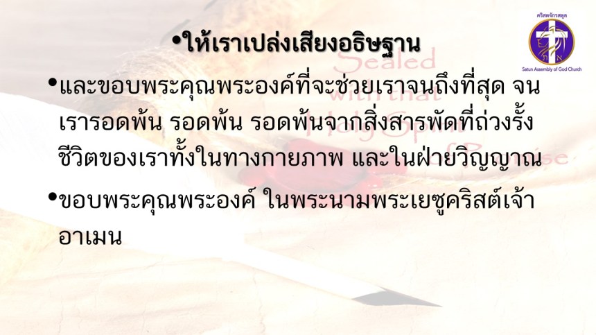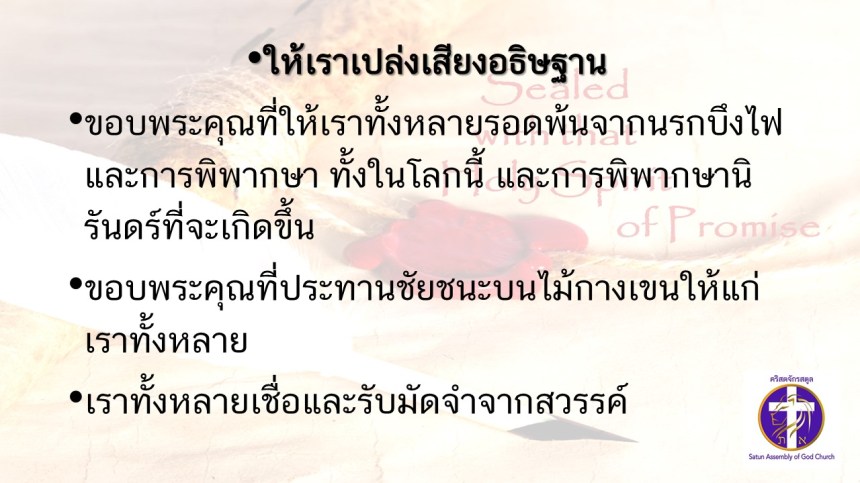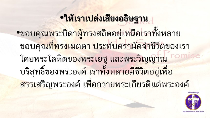 คำเทศนาโดย ศจ.ดร.สมหมาย แสงสว่างสัจกุล