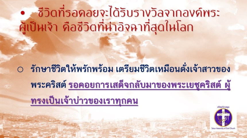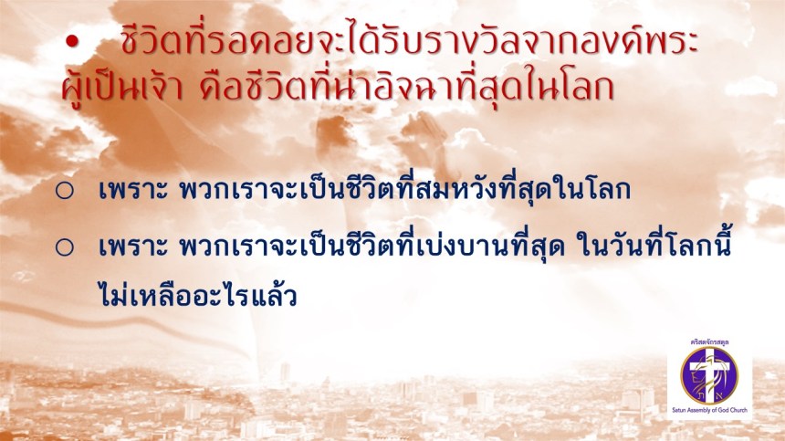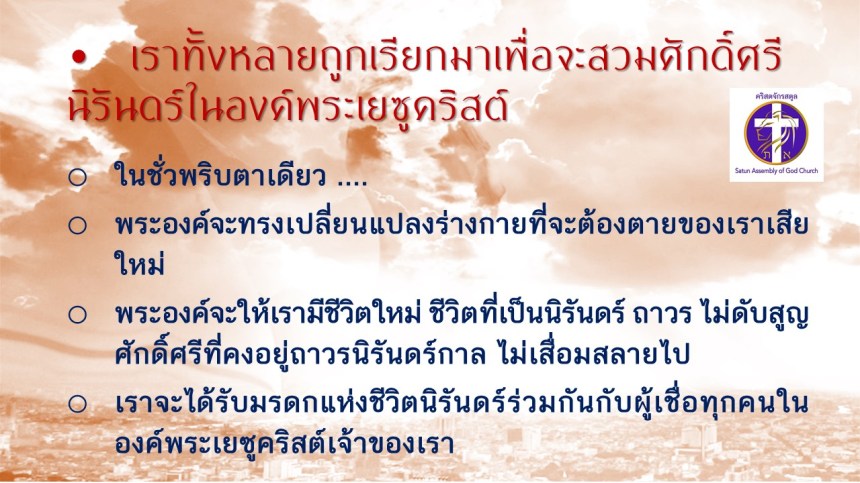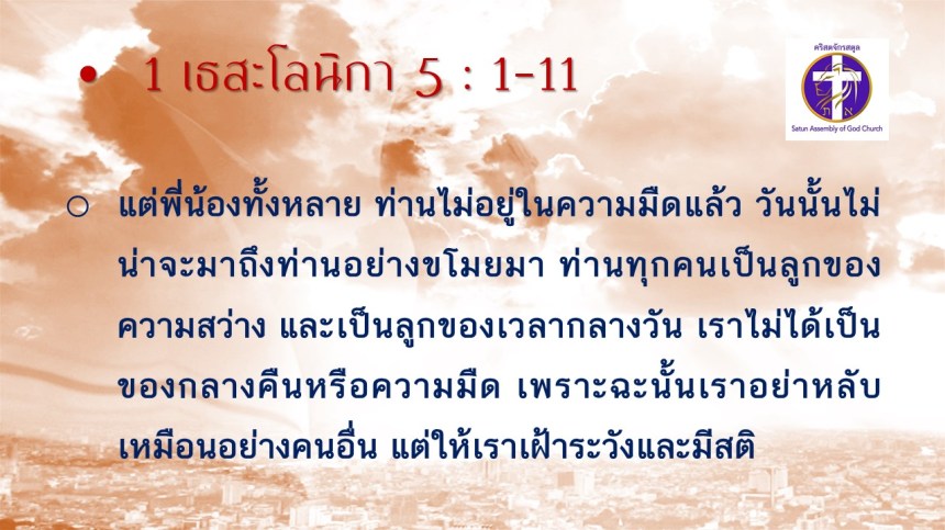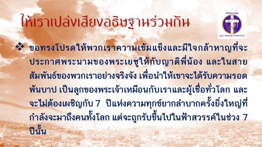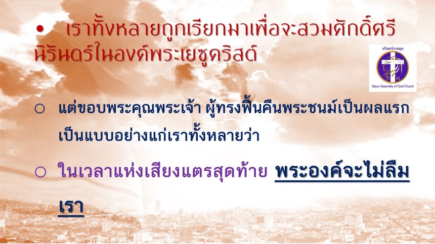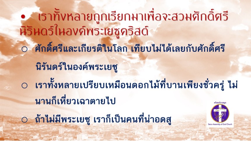 คำเทศนา โดย ศจ.ดร. สมหมาย แสงสว่างสัจกุล