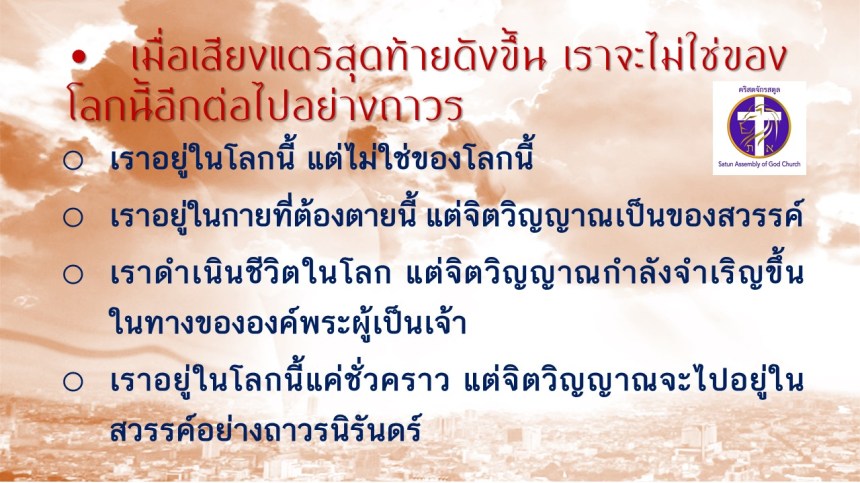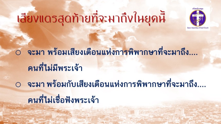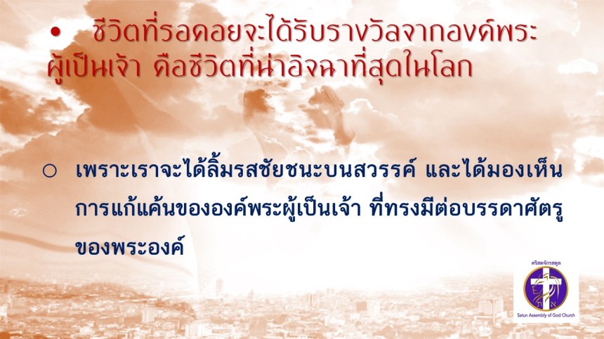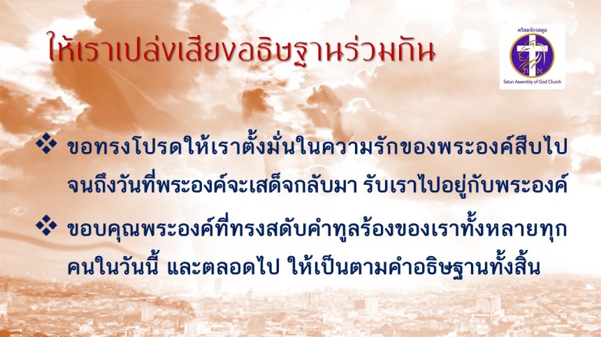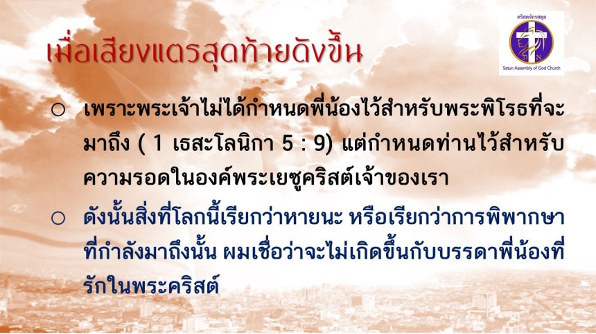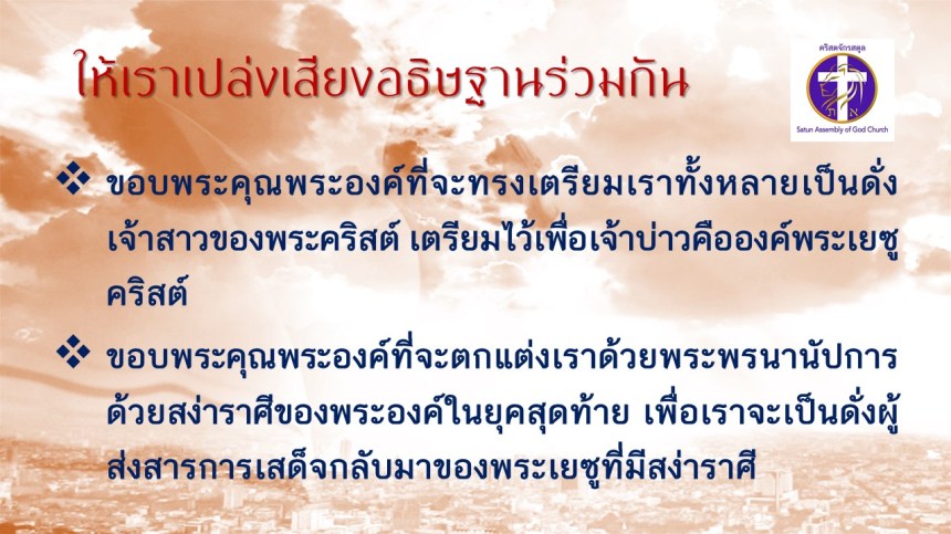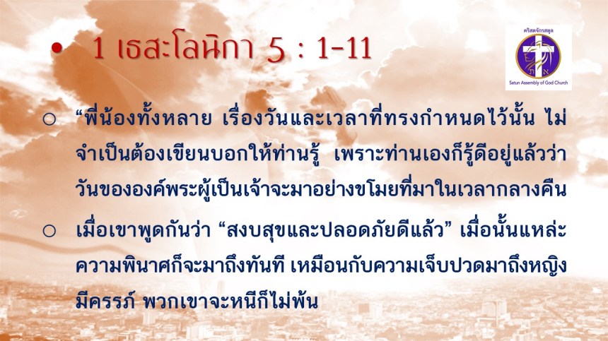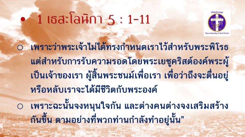 คำเทศนา โดย ศจ.ดร. สมหมาย แสงสว่างสัจกุล