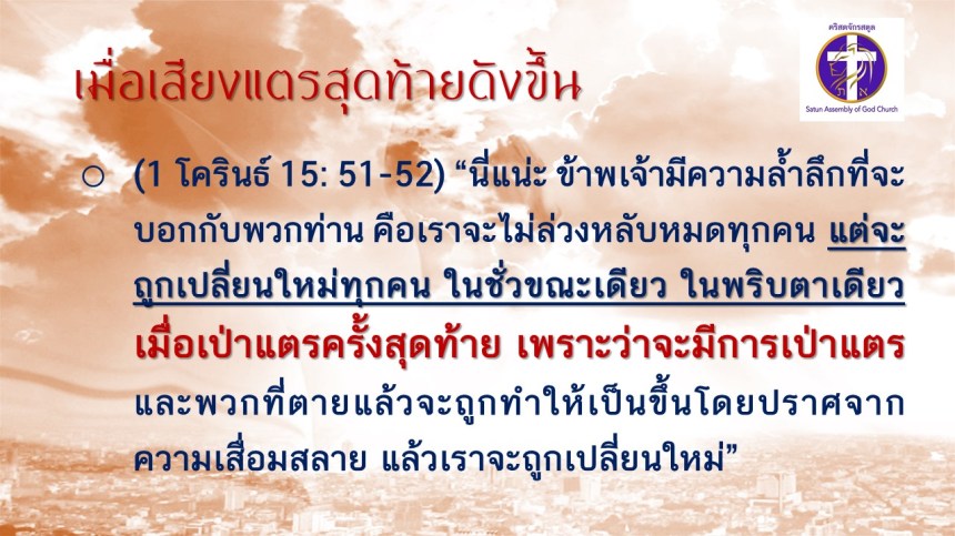 (1 โครินธ์ 15:52, 1 เธสะโลนิกา 4:16)