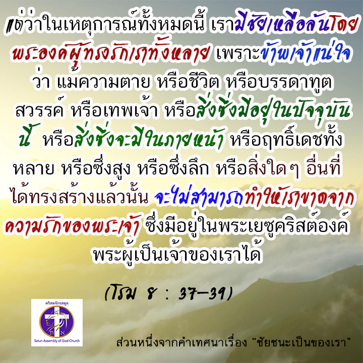 คำคมจากคำเทศนา “ชัยชนะเป็นของเรา” แบ่งปันสิ่งนี้: กดเพื่อแชร์บน X(เปิดในหน้าต่างใหม่) X กดเพื่อแชร์บนเฟซบุ๊ค(เปิดในหน้าต่างใหม่) เฟซบุ๊ค ถูกใจ กำลังโหลด... ที่เกี่ยวข้อง