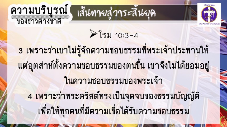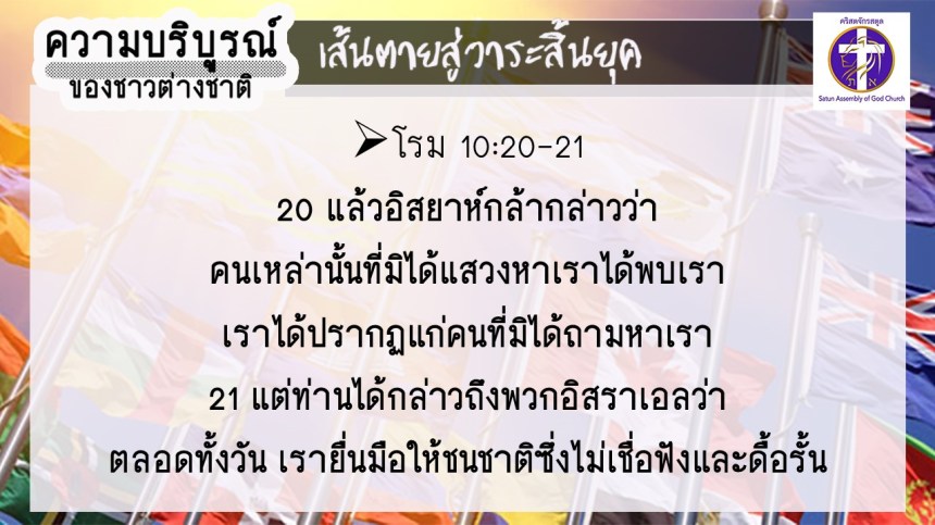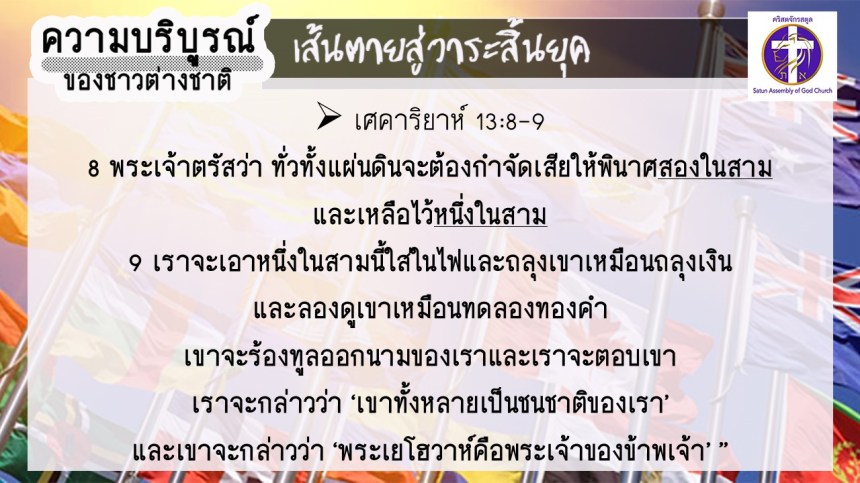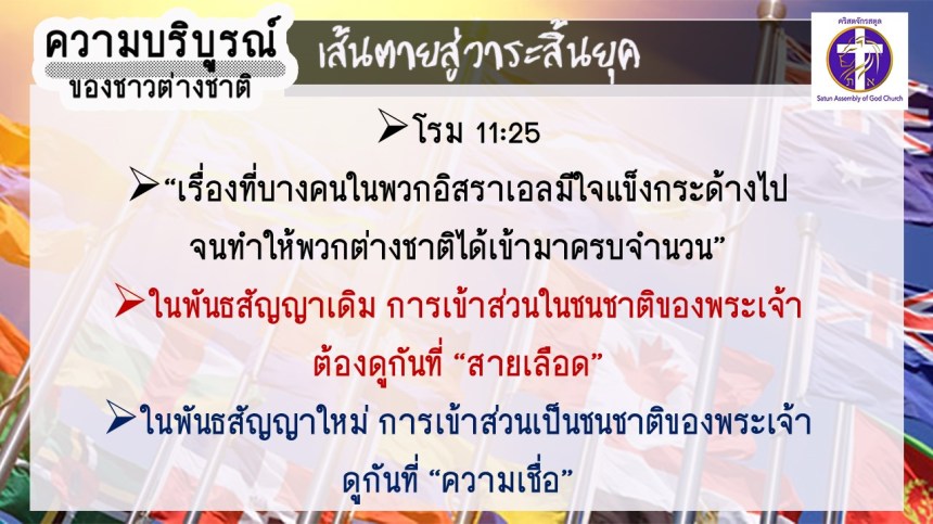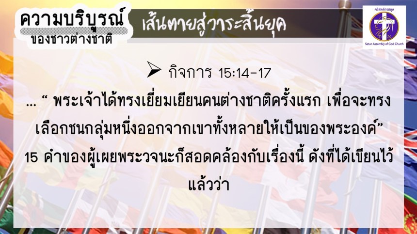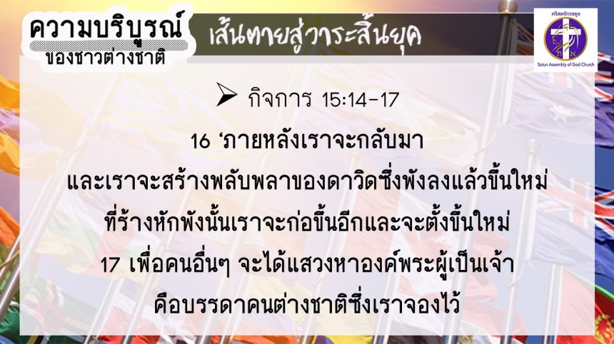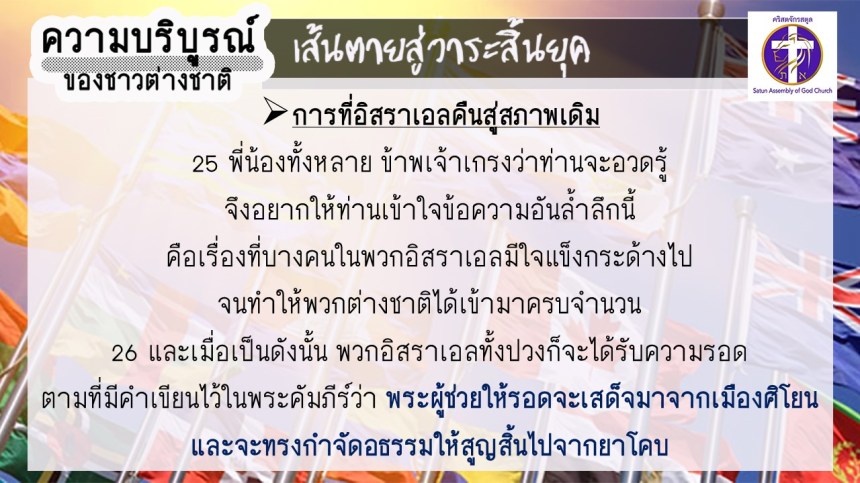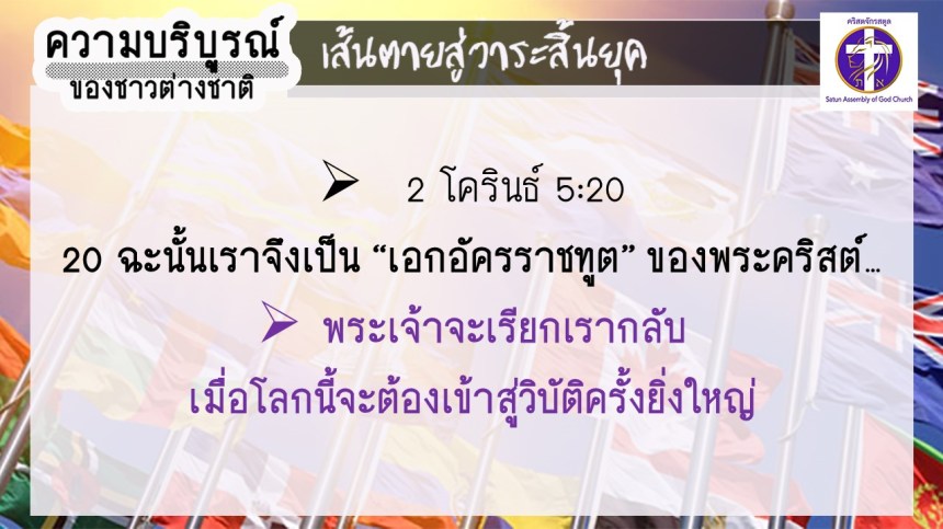 โดย อ.อำนาจ แสงสว่างสัจกุล คริสตจักรสตูล