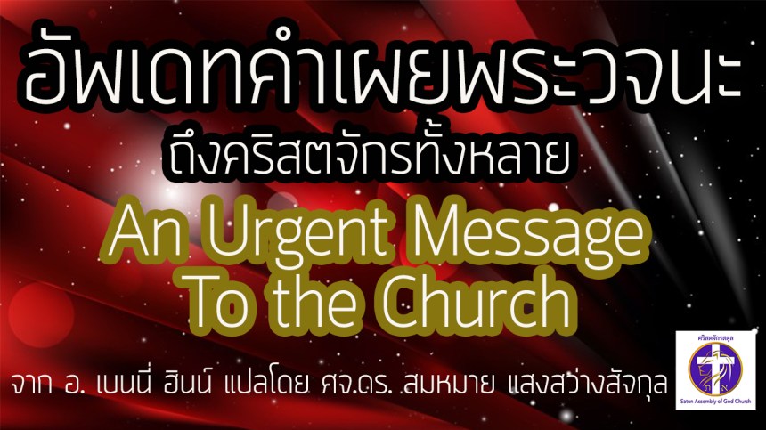 อัพเดทคำเผยพระวจนะ ถึงคริสตจักรทั้งหลาย จาก อ.เบนนี่ ฮินน์ แปลโดย ศจ.ดร.สมหมาย แสงสว่างสัจกุล