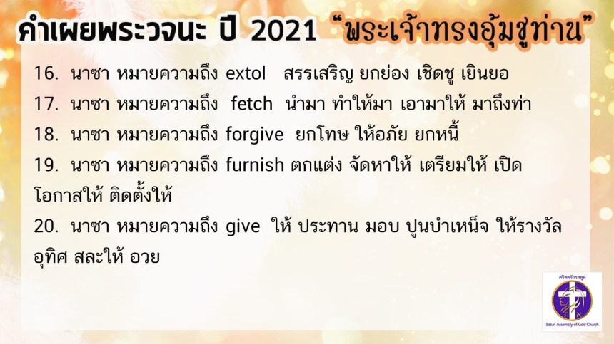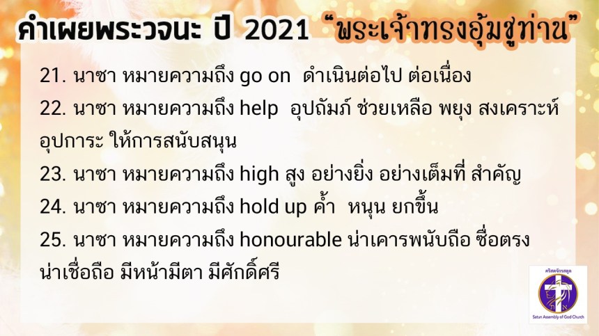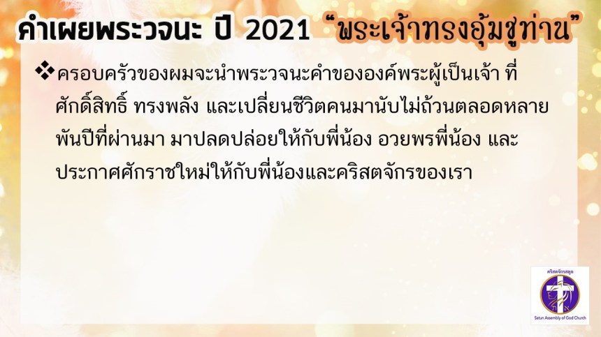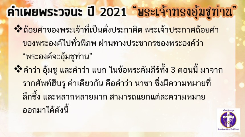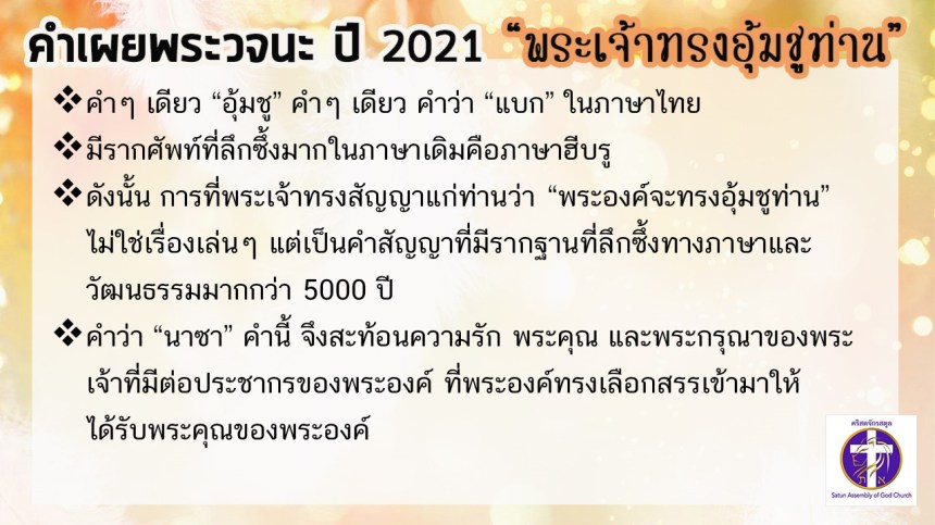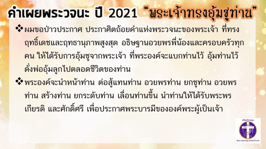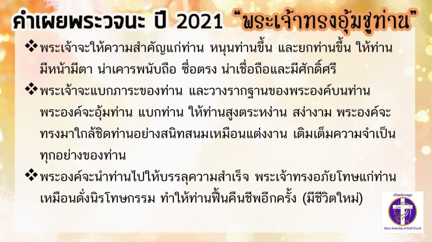 คำเผยพระวจนะ ปี 2021 “พระเจ้าทรงอุ้มชูท่าน”