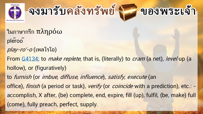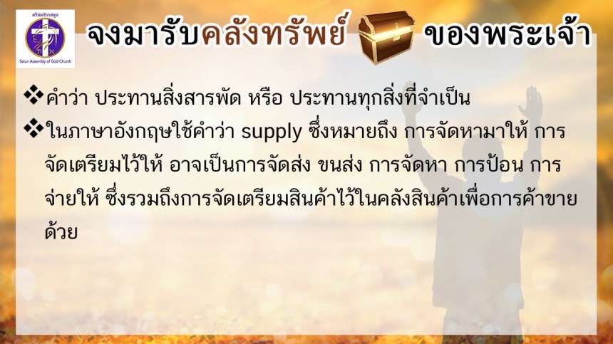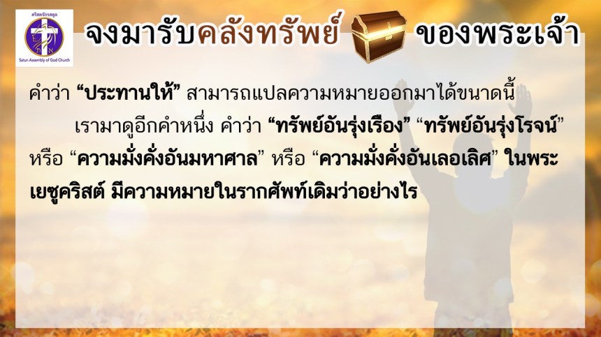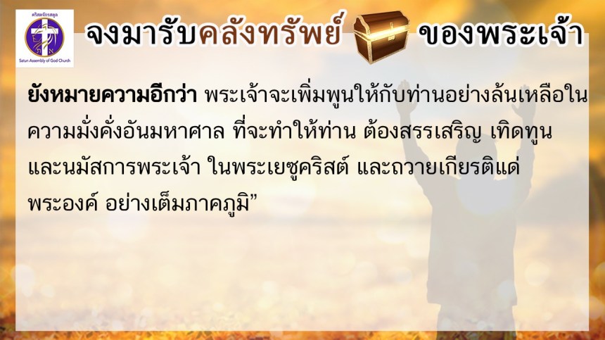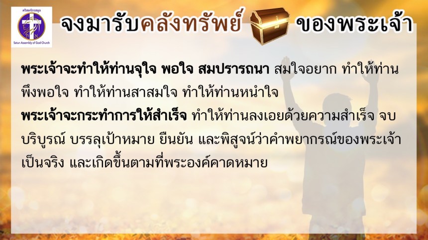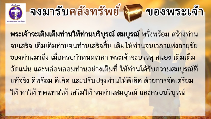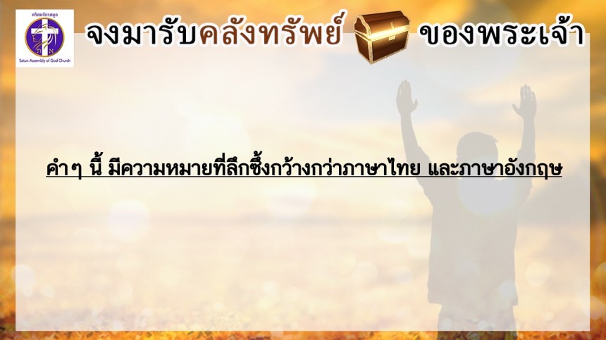 โดย ศจ.ดร.สมหมาย – อ.นภาพร – อ.อำนาจ แสงสว่างสัจกุล คริสตจักรสตูล
