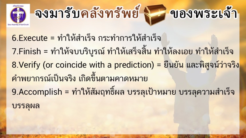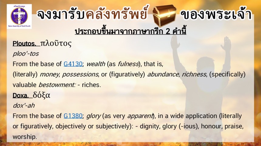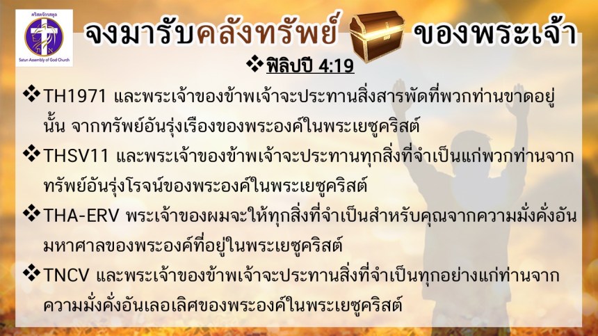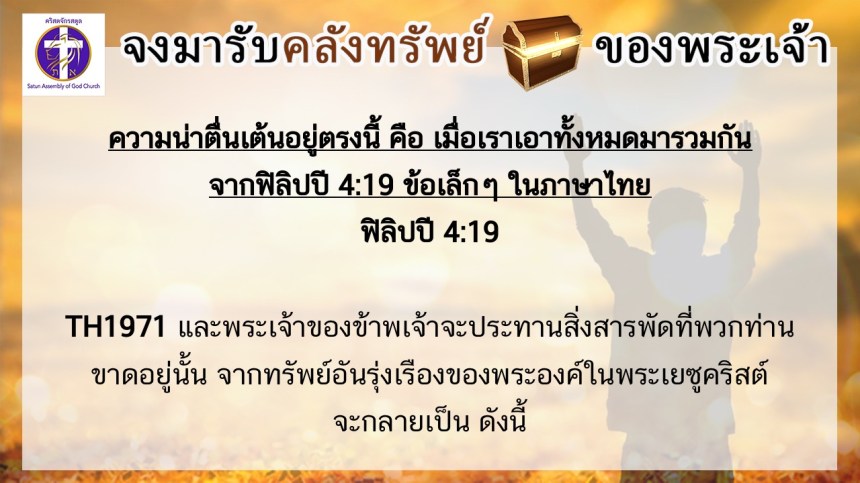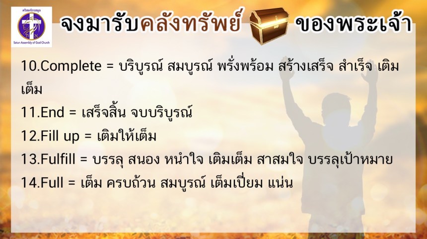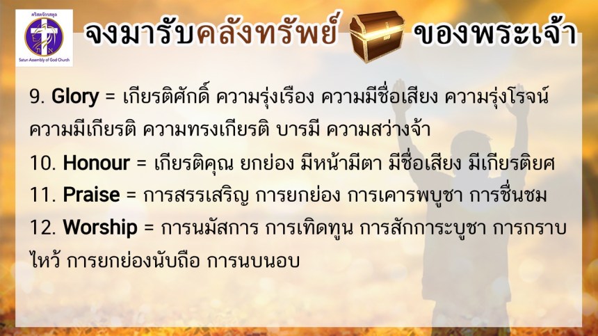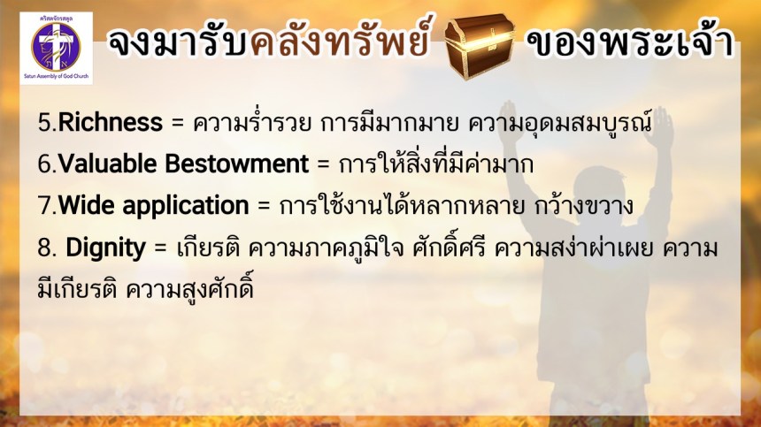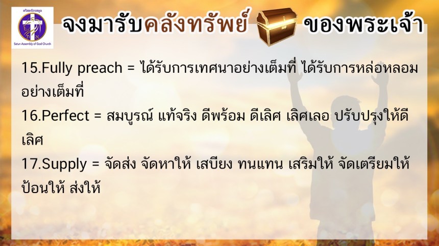 โดย ศจ.ดร.สมหมาย – อ.นภาพร – อ.อำนาจ แสงสว่างสัจกุล คริสตจักรสตูล