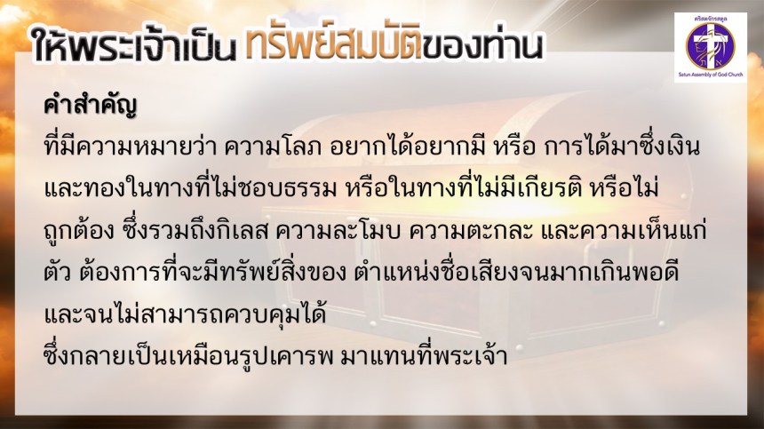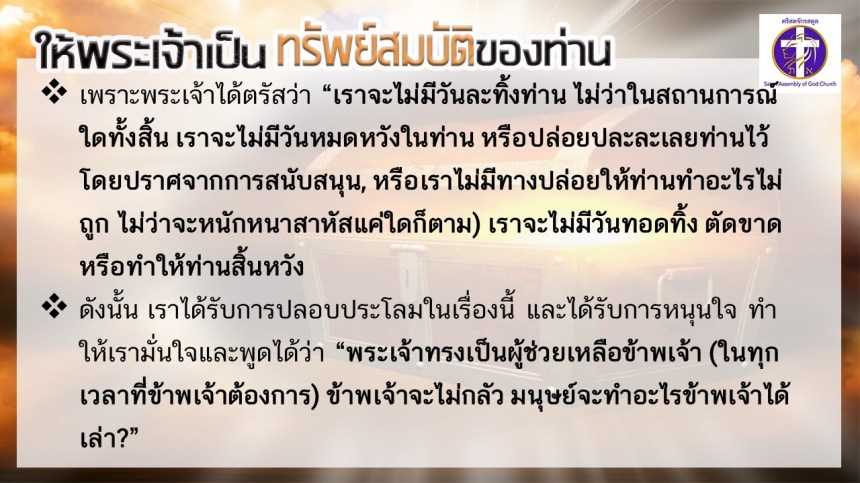 ให้พระเจ้าเป็นทรัพย์สมบัติของท่าน