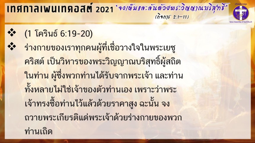 จงเต็มและล้นด้วยพระวิญญาณบริสุทธิ์ | เทศกาลเพนเทคอสต์ 2021