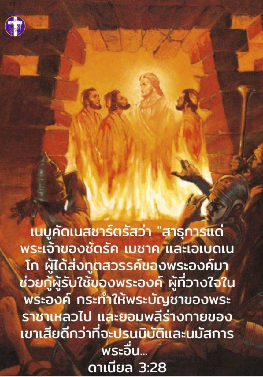 ■ เนบูคัดเนสซาร์ตรัสว่า “สาธุการแด่พระเจ้าของชัดรัค เมชาค และเอเบดเนโก ผู้ได้ส่งทูตสวรรค์ของพระองค์มาช่วยกู้ผู้รับใช้ของพระองค์ ผู้ที่วางใจในพระองค์ กระทำให้พระบัญชาของพระราชาเหลวไป และยอมพลีร่างกายของเขาเสียดีกว่าที่จะ ปรนนิบัติและนมัสการพระอื่น นอกจากพระเจ้าของเขาเอง”
