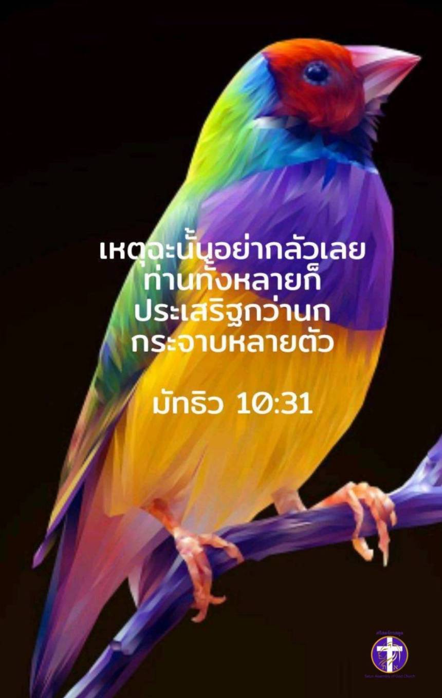 ■ ถึงผมของท่านทั้งหลาย ก็ทรงนับไว้แล้วทุกเส้น เหตุฉะนั้นอย่ากลัวเลย ท่านทั้งหลายก็ประเสริฐกว่านกกระจาบหลายตัว