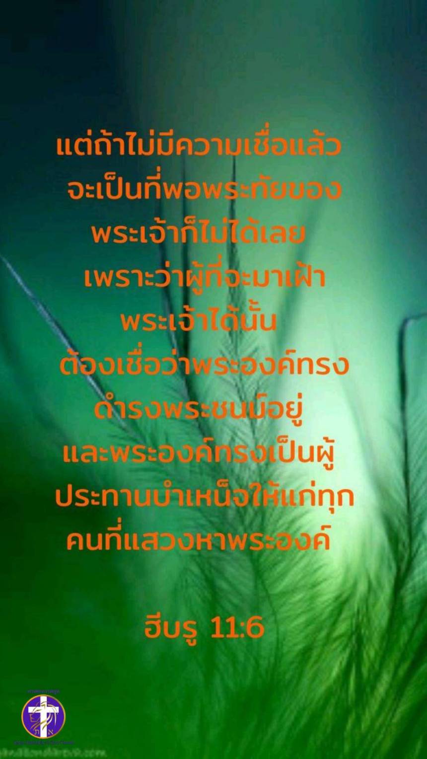 “แต่ถ้าไม่มีความเชื่อแล้ว จะเป็นที่พอพระทัยของพระเจ้าก็ไม่ได้เลย เพราะว่าผู้ที่จะมาเฝ้าพระเจ้าได้นั้น ต้องเชื่อว่าพระองค์ทรงดำรงพระชนม์อยู่ และพระองค์ทรงเป็นผู้ประทานบำเหน็จให้แก่ทุกคนที่แสวงหาพระองค์”