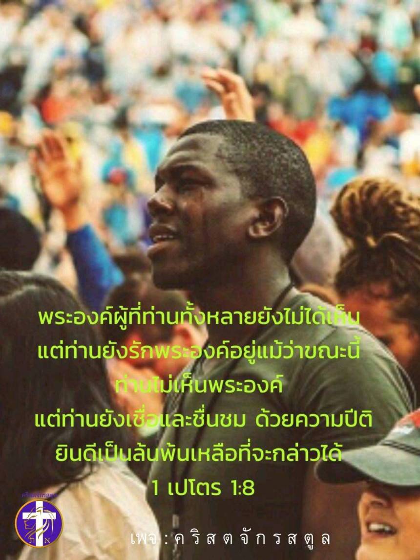 “พระองค์ผู้ที่ท่านทั้งหลายยังไม่ได้เห็น แต่ท่านยังรักพระองค์อยู่แม้ว่าขณะนี้ท่านไม่เห็นพระองค์ แต่ท่านยังเชื่อและชื่นชม ด้วยความปีติยินดีเป็นล้นพ้นเหลือที่จะกล่าวได้”