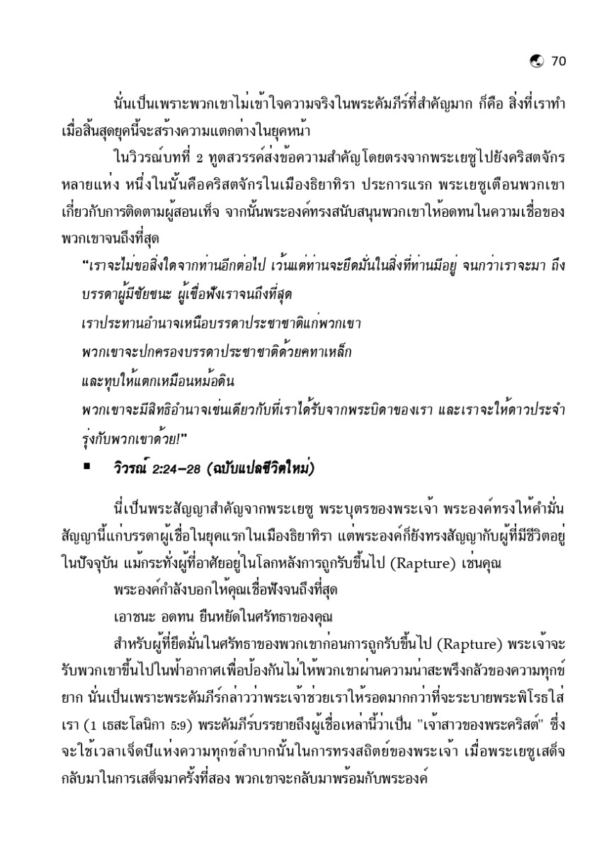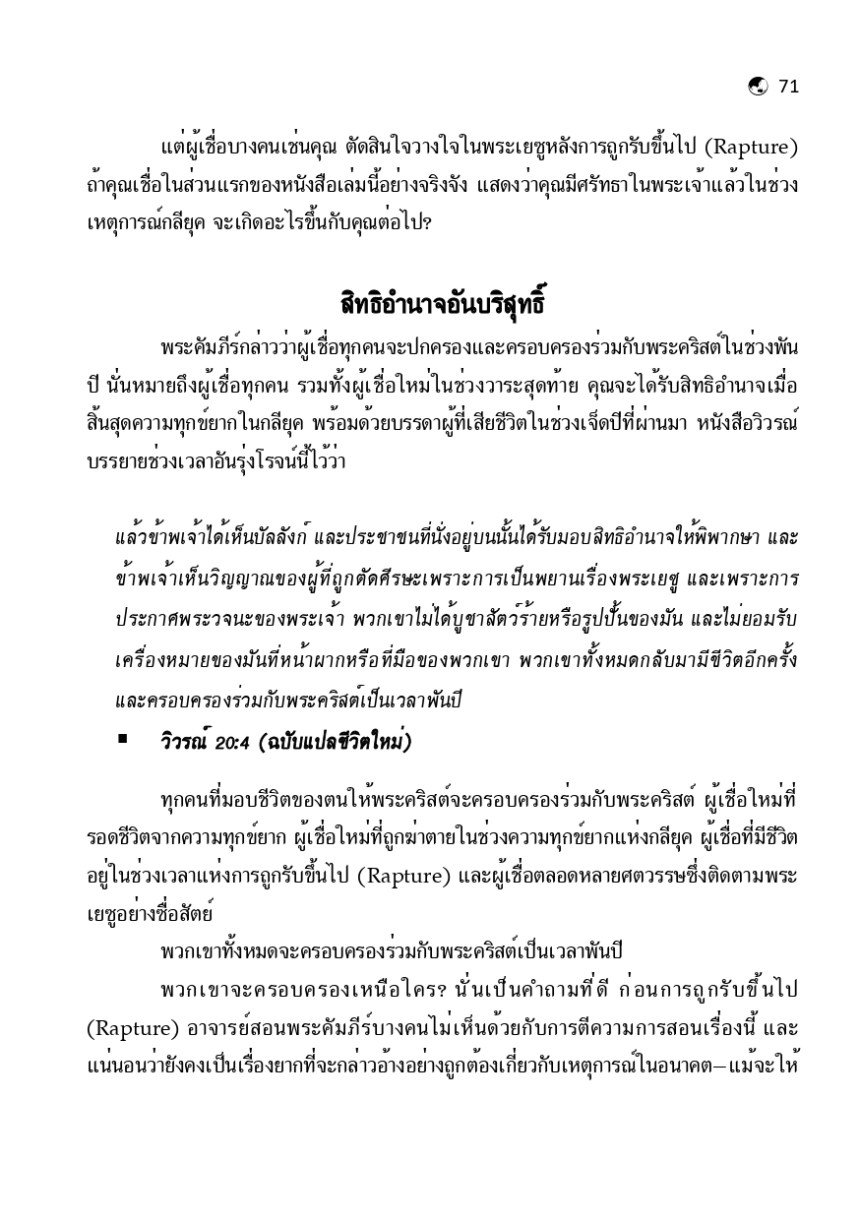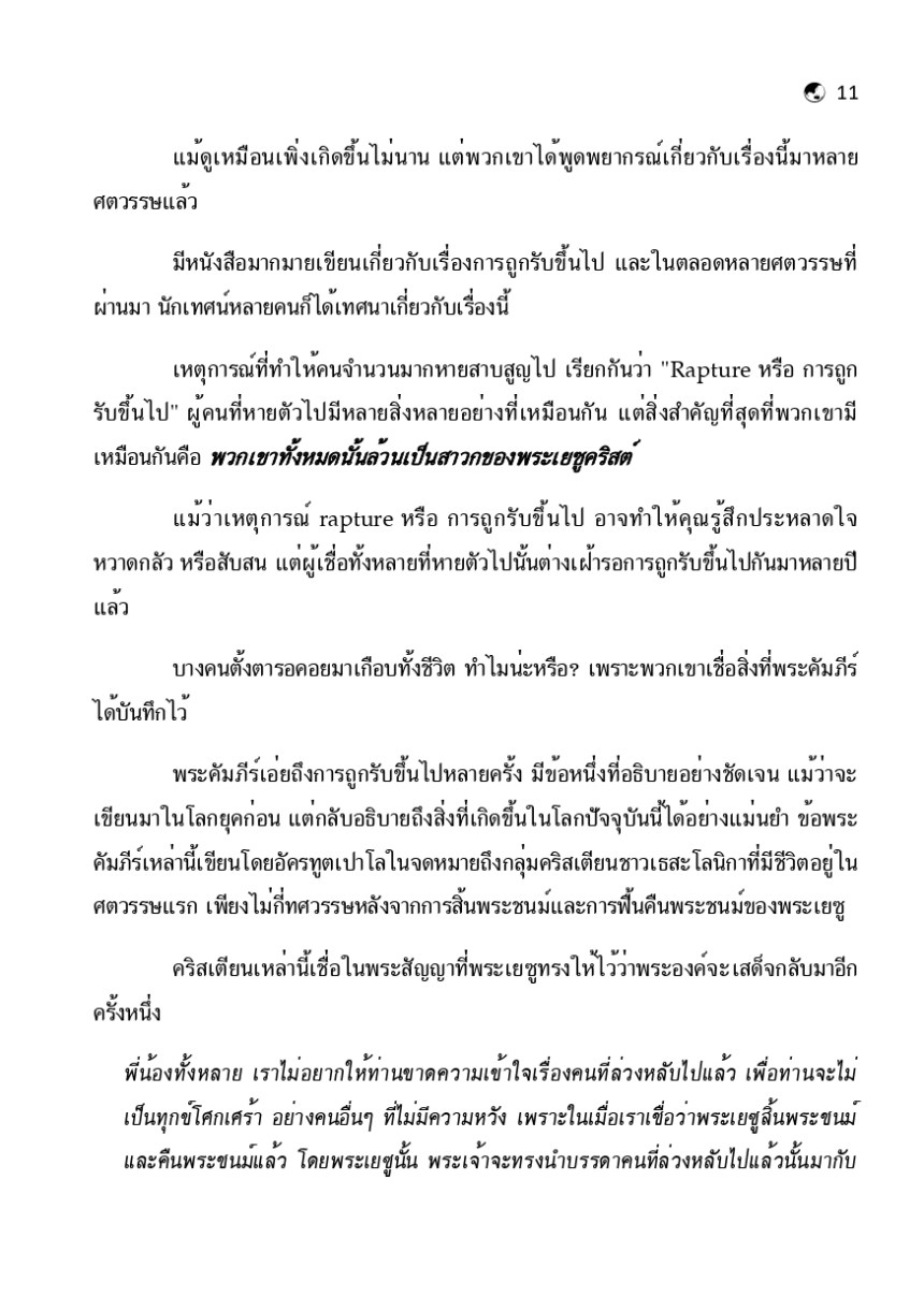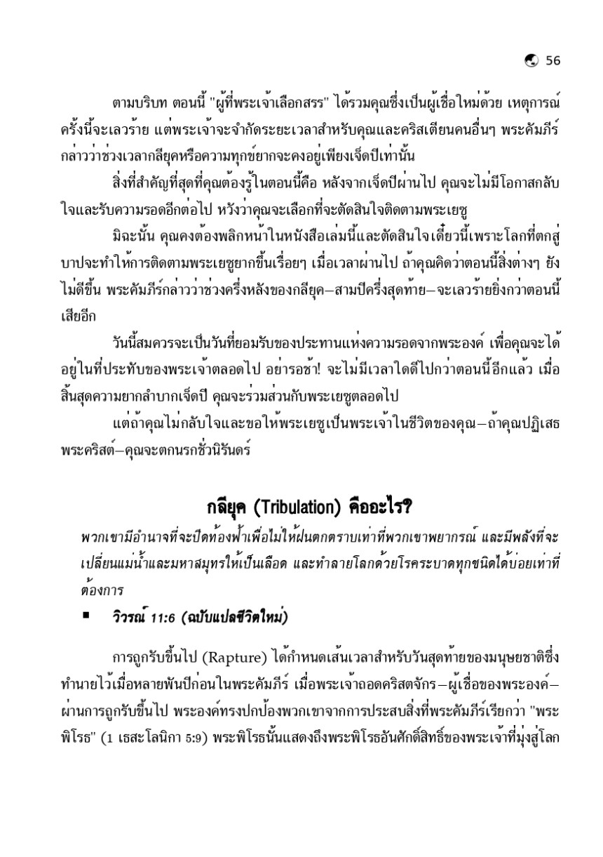 และคนที่ไม่รู้จักพระเจ้าจะต้องรู้ว่ามีพระเจ้าเที่ยงแท้ที่เตรียม Rapture(การถูกรับขึ้นไป) ไว้สำหรับซ่อนบรรดาคนของพระองค์ให้พ้นวิบัติภัยของโลกในวาระสุดท้าย