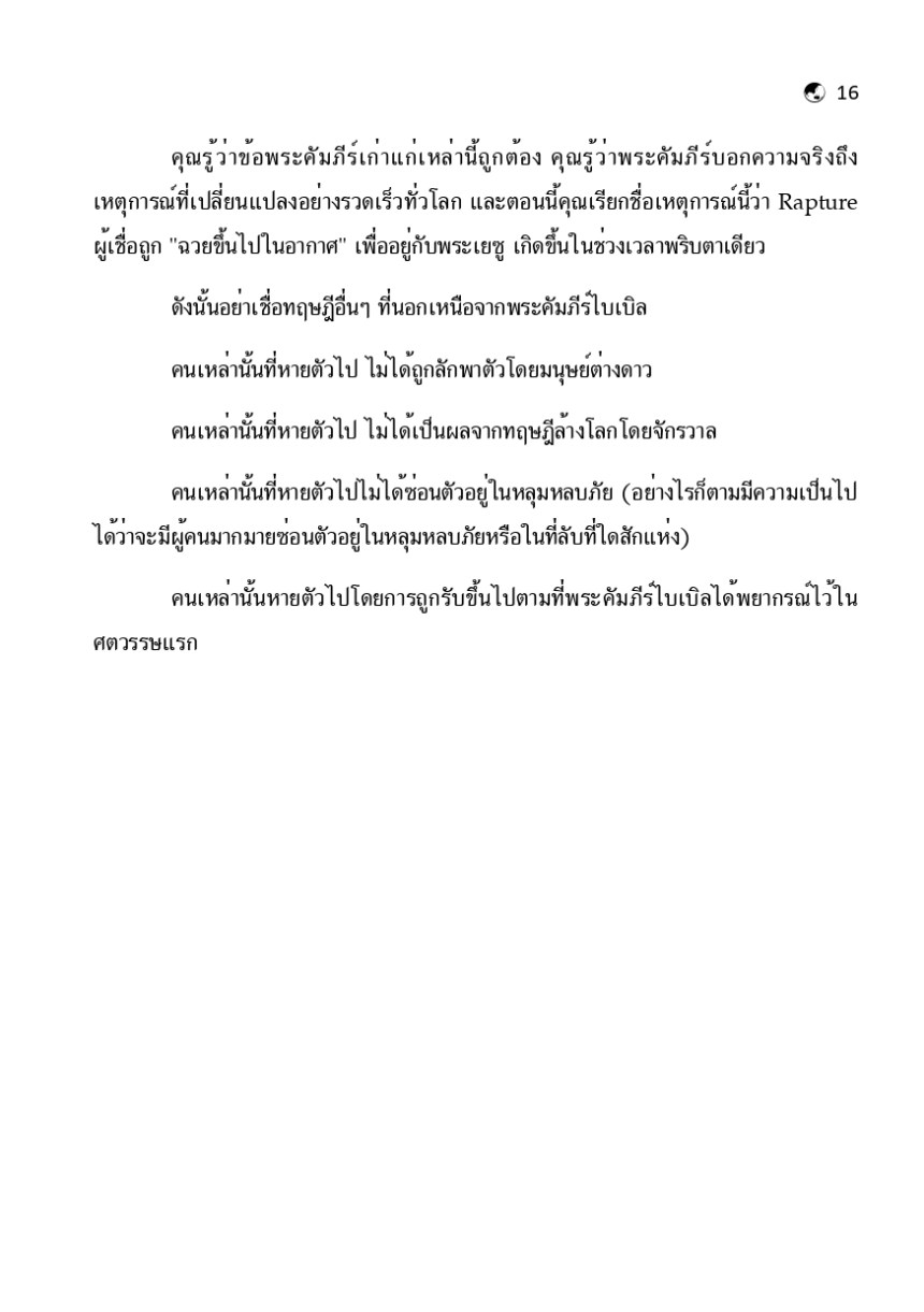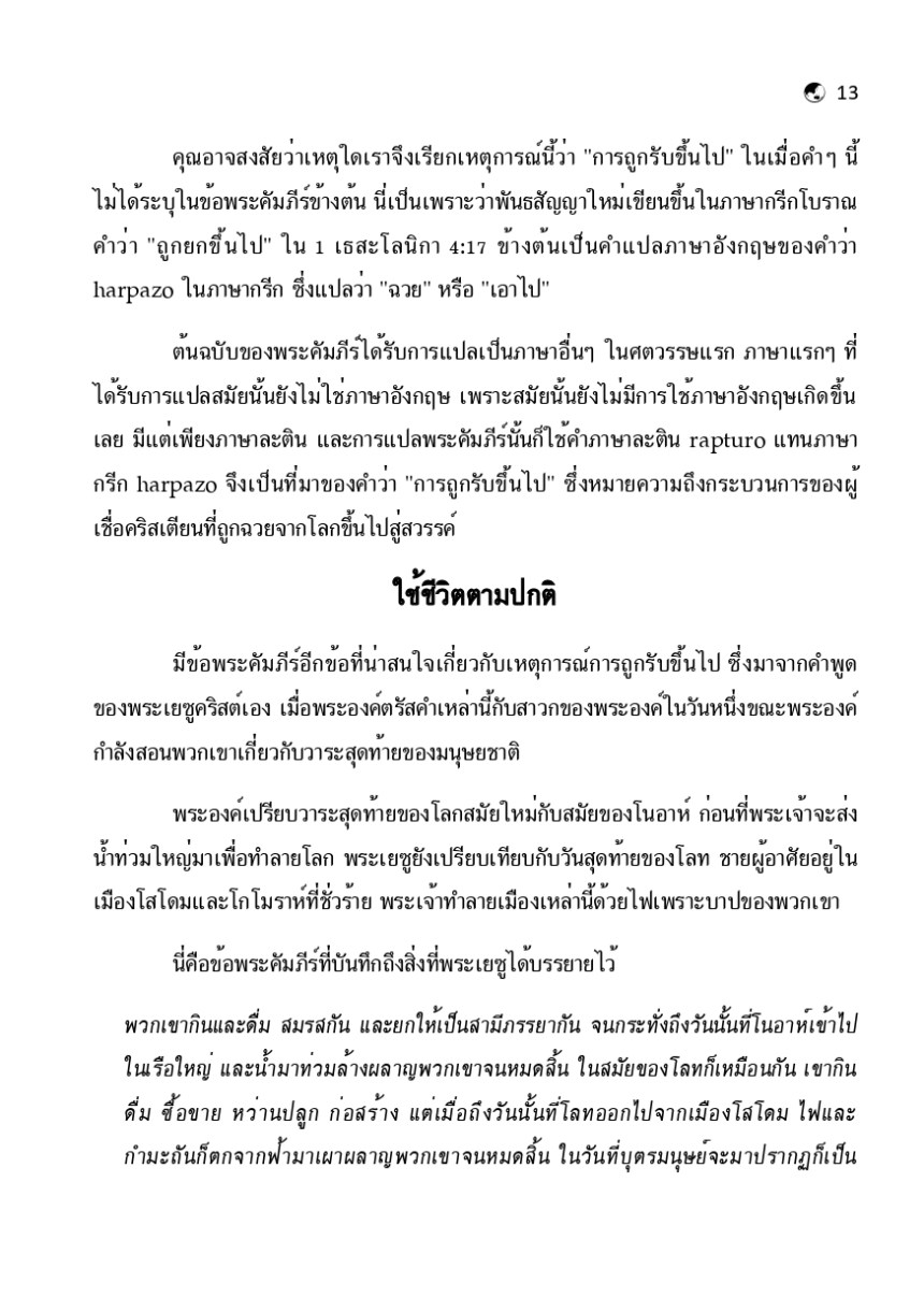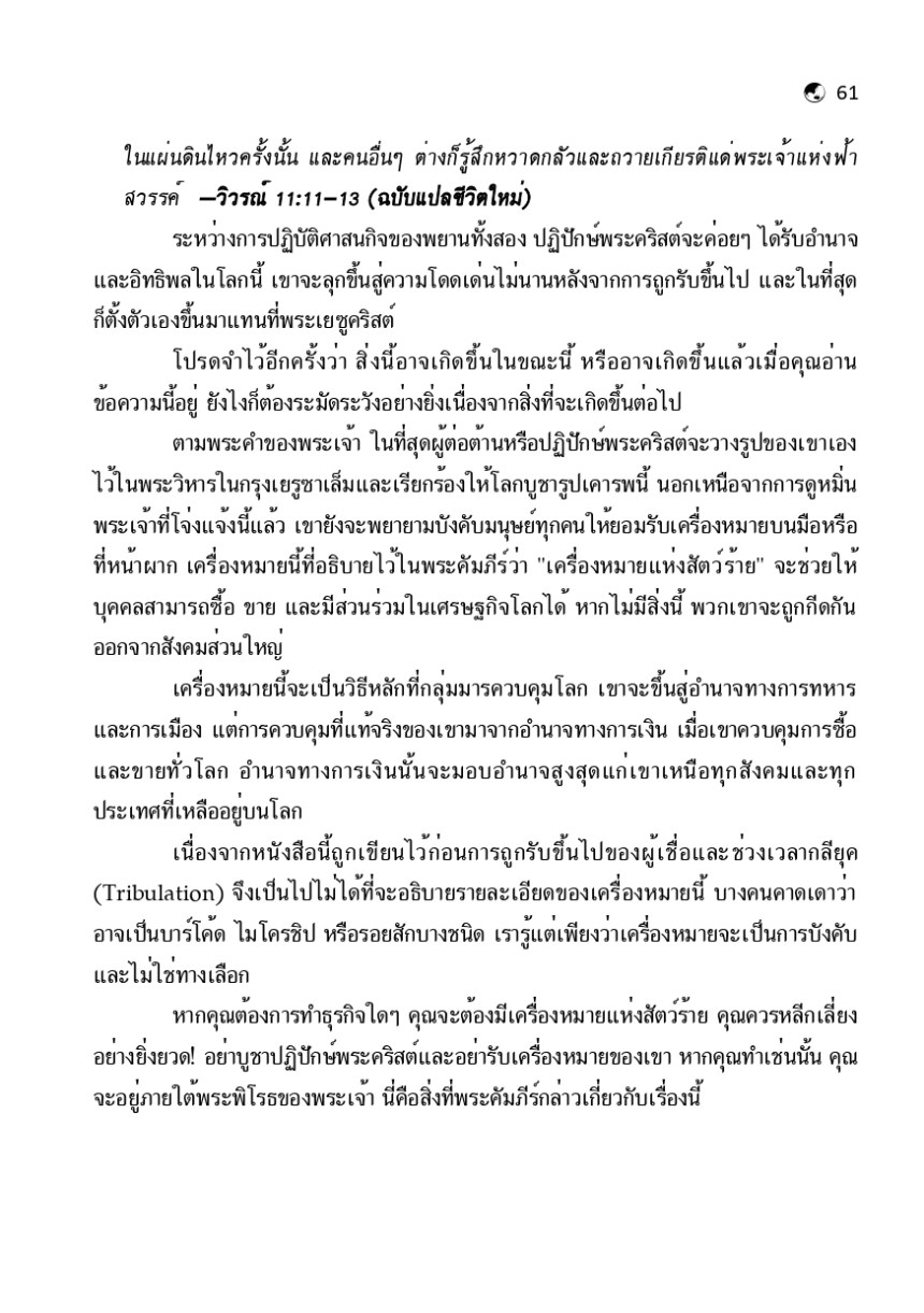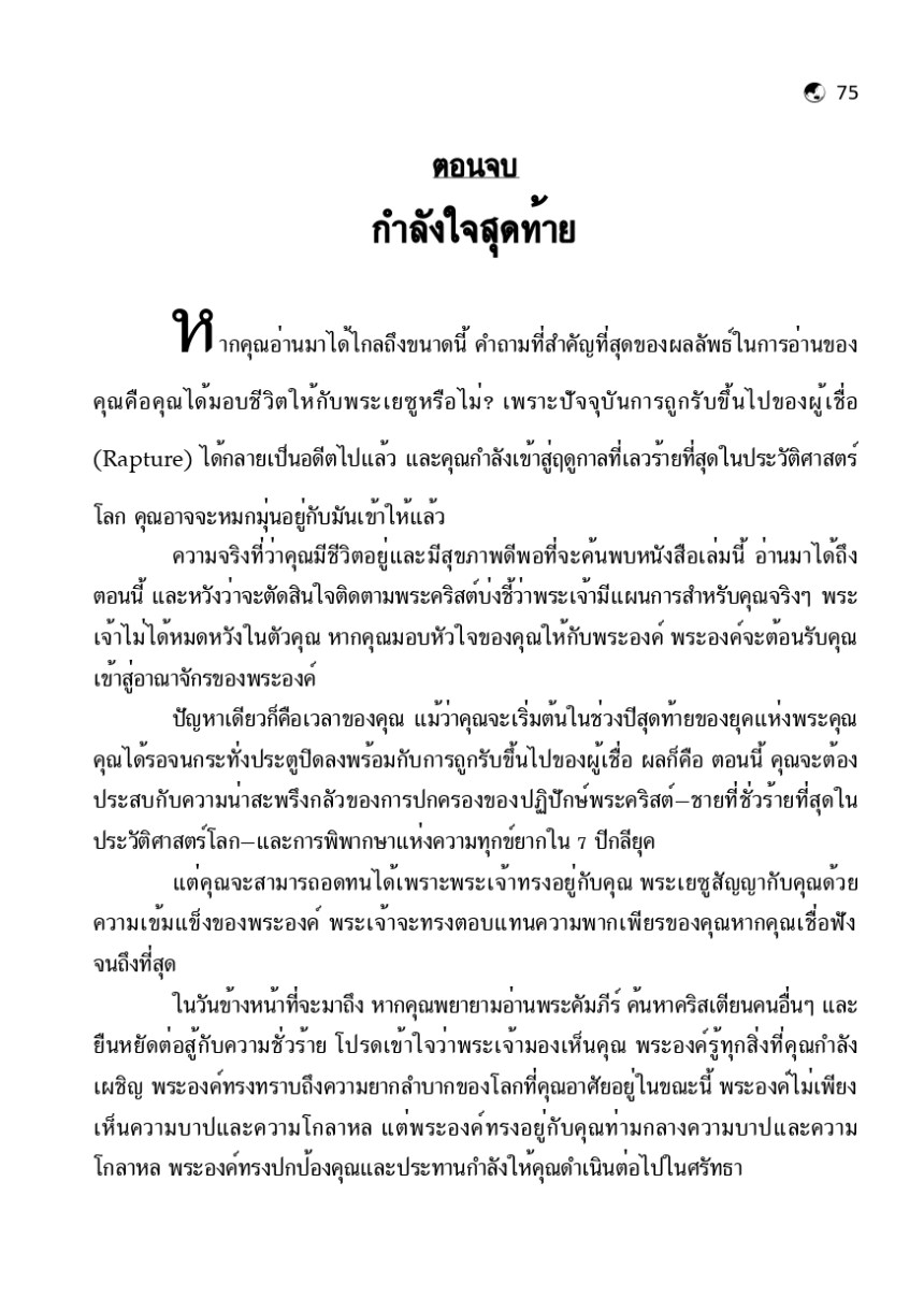 และคนที่ไม่รู้จักพระเจ้าจะต้องรู้ว่ามีพระเจ้าเที่ยงแท้ที่เตรียม Rapture(การถูกรับขึ้นไป) ไว้สำหรับซ่อนบรรดาคนของพระองค์ให้พ้นวิบัติภัยของโลกในวาระสุดท้าย