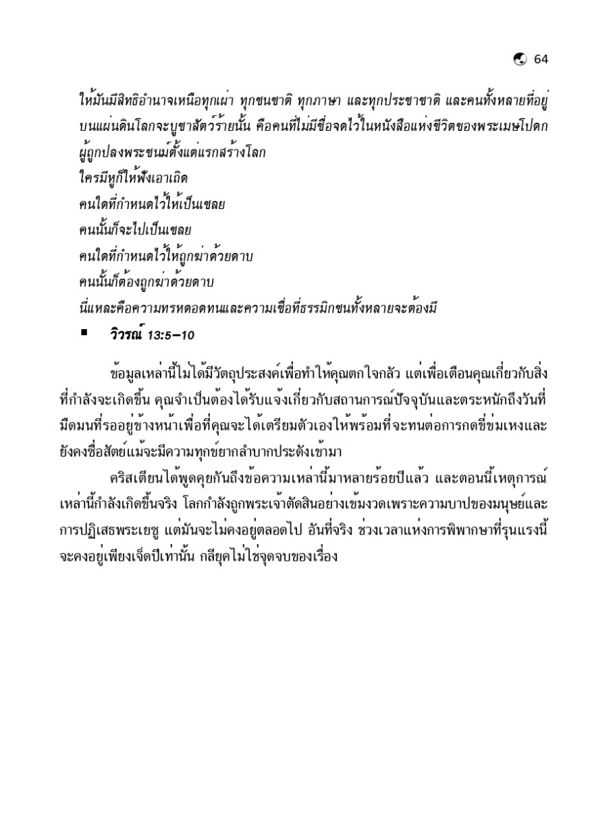 และสำหรับคนที่หวาดกลัวกับกลียุค จะได้รับการหนุนน้ำใจให้มั่นใจและวางใจในพระเจ้า