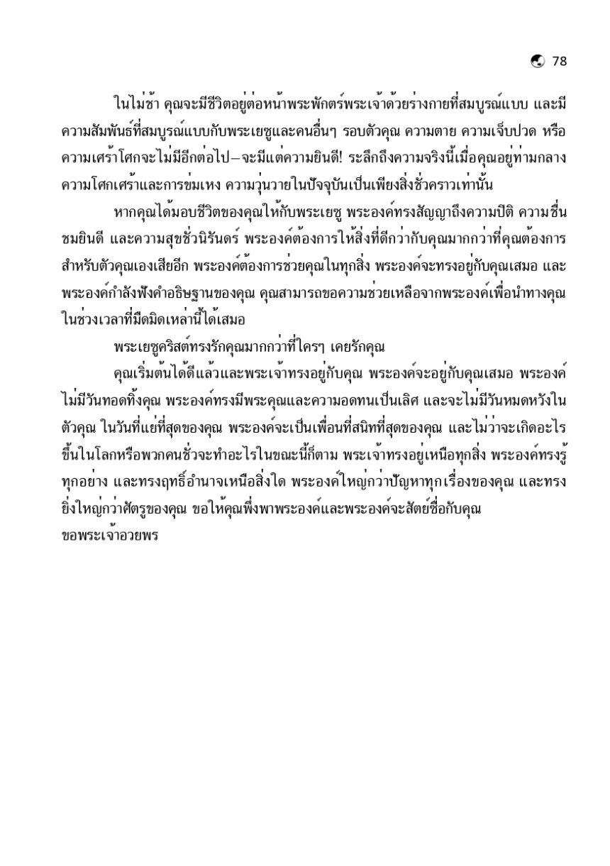หนังสือเล่มนี้จะเปิดตาใจ และให้กำลังใจคนที่ถูกทิ้ง รวมถึงคนที่ไม่เชื่อ ว่าพระเจ้าเป็นความจริง และพระองค์ทรงดำรงอยู่ตั้งแต่นิรันดร์กาลจวบจนนิรันดร์กาล ❤️❤️❤️