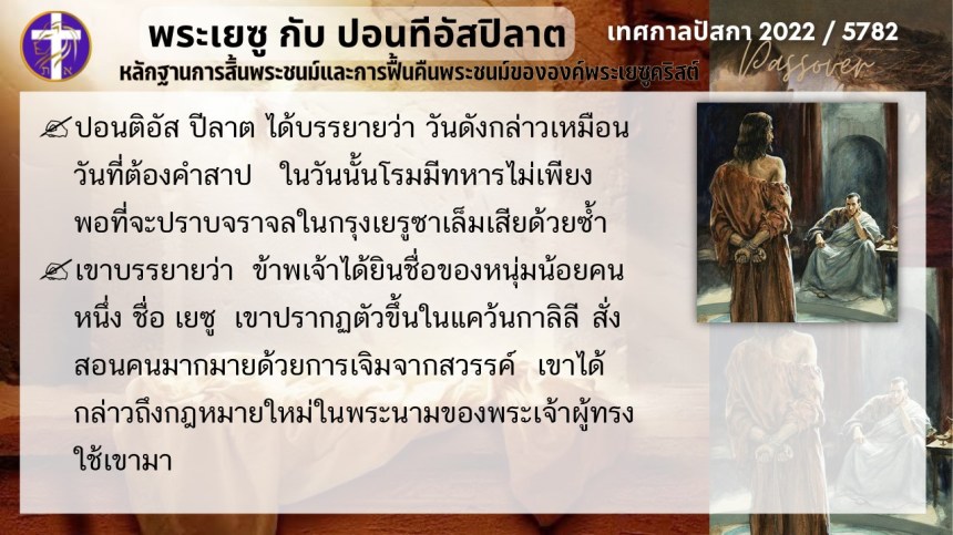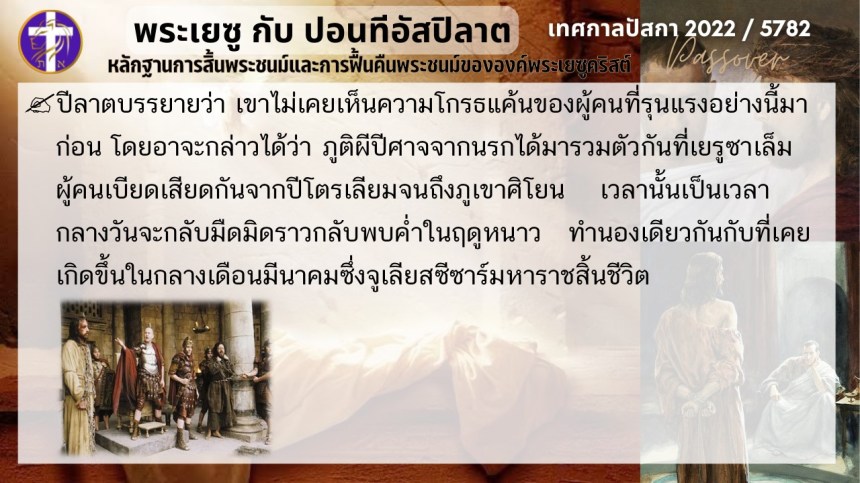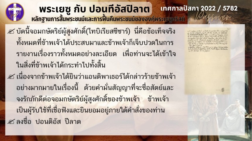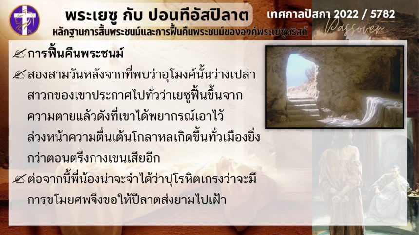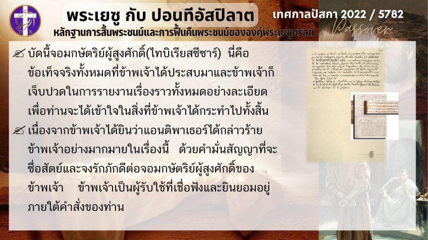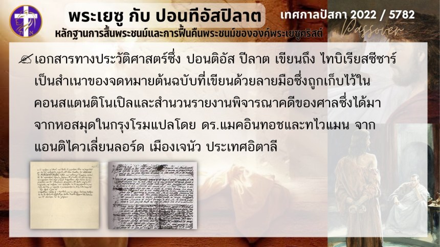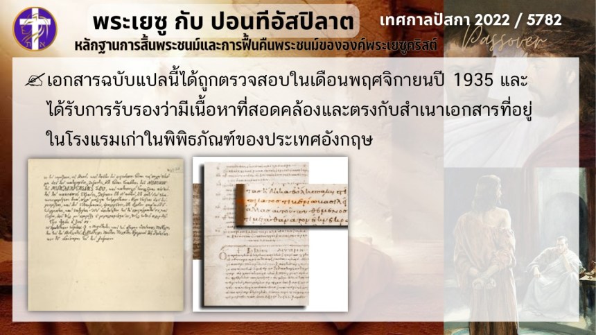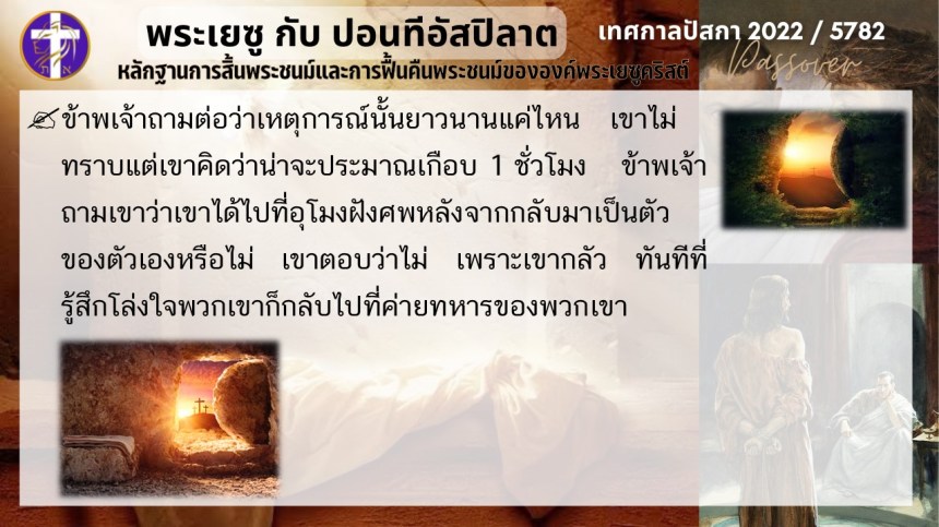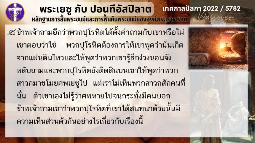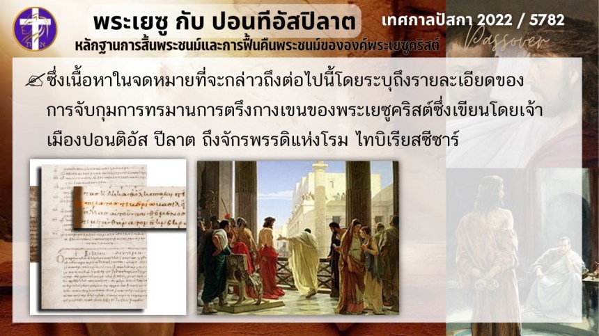 บทสนทนาลับของพระเยซูกับปอนติอัสปิลาต | หลักฐานแห่งการสิ้นพระชนม์และฟื้นคืนพระชนม์ของพระเยซู | ปัสกา