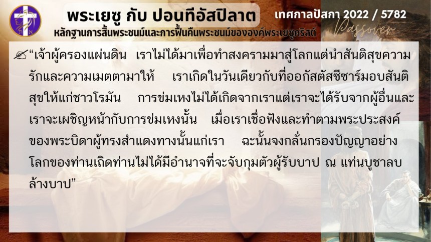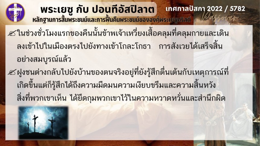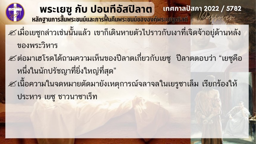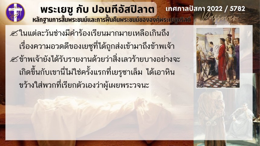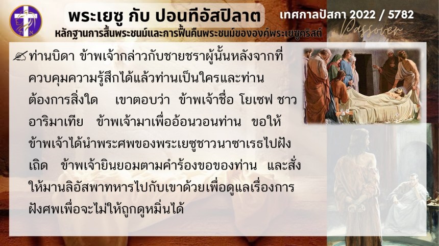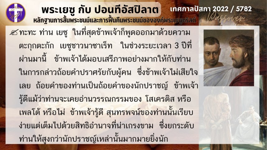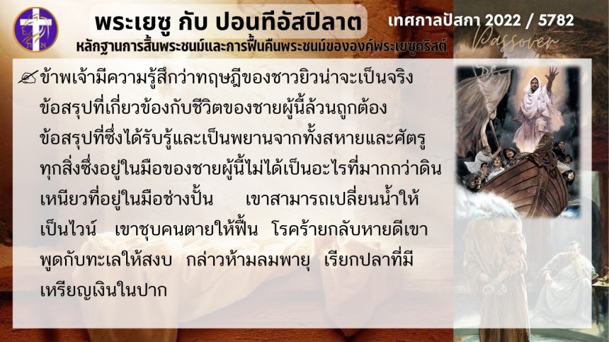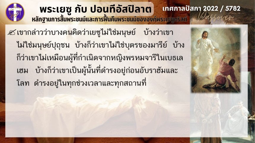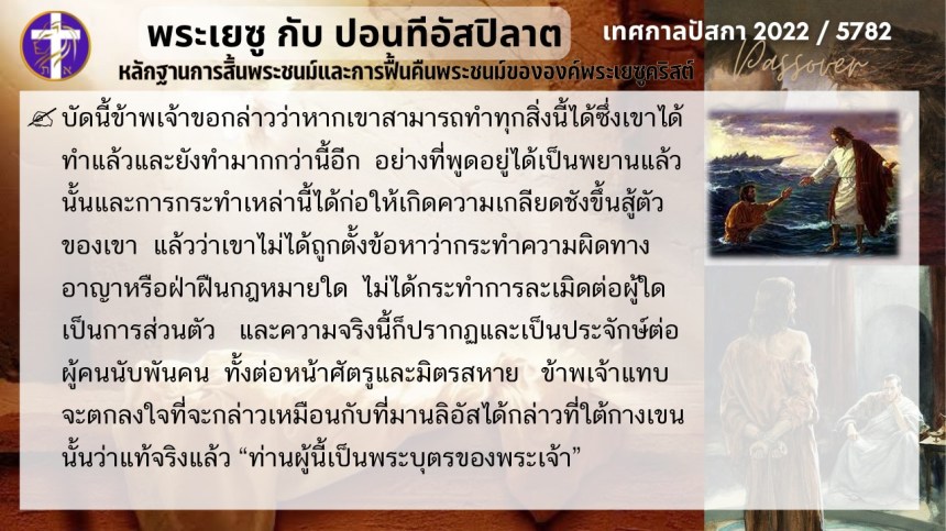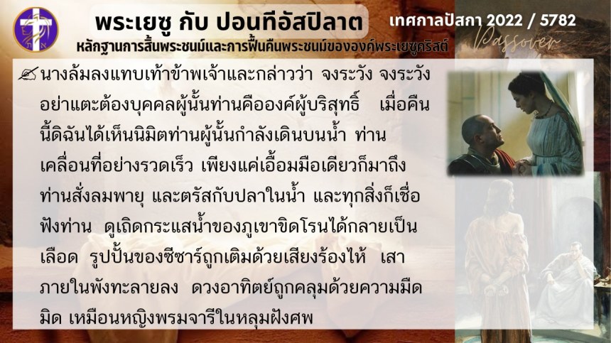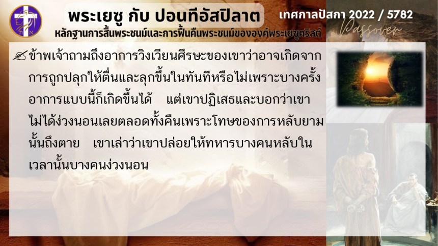 บทสนทนาลับของพระเยซูกับปอนติอัสปิลาต | หลักฐานแห่งการสิ้นพระชนม์และฟื้นคืนพระชนม์ของพระเยซู | ปัสกา