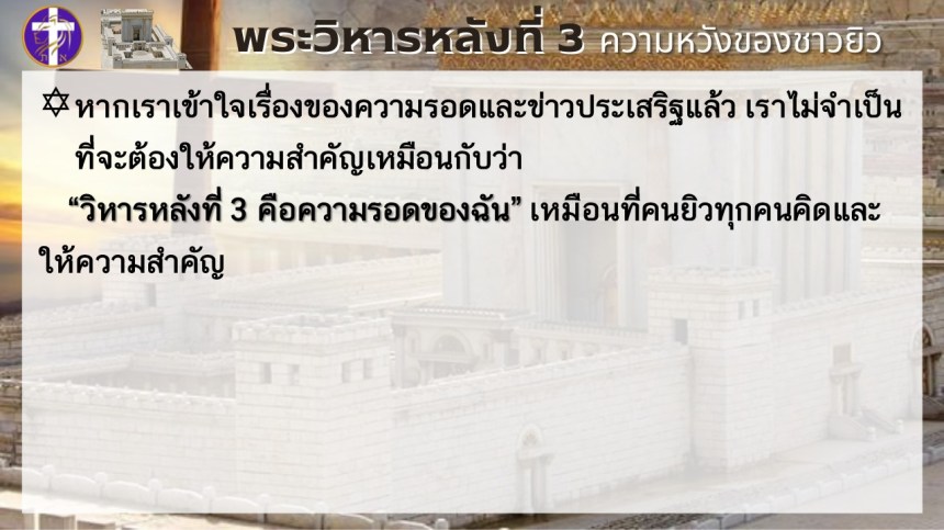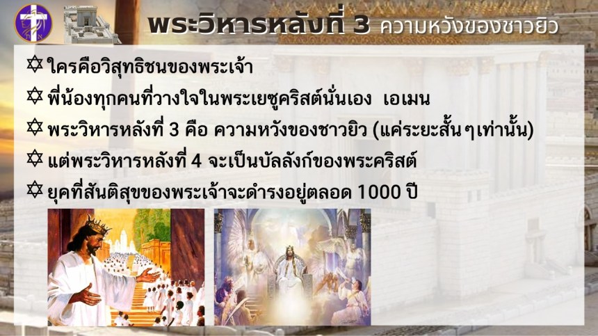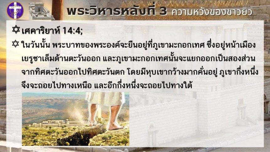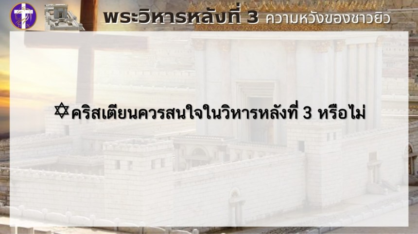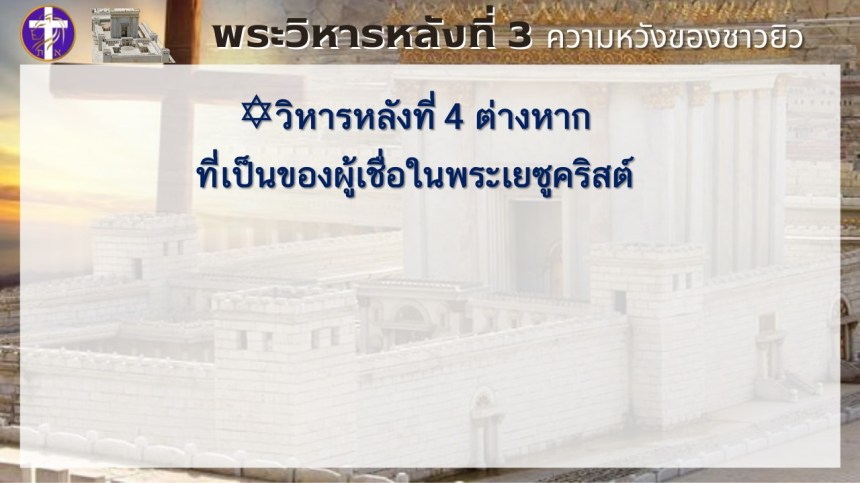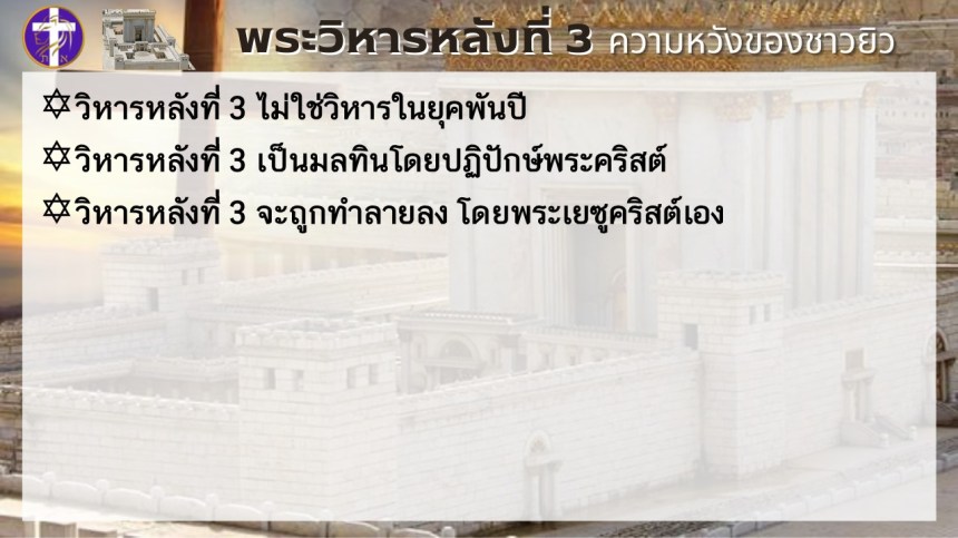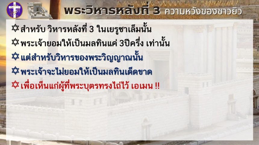 พระวิหารหลังที่ 3 ความหวังของชาวยิว | แต่พระวิหารหลังที่ 4 จะเป็นความหวังของทุกประชาชาติ |