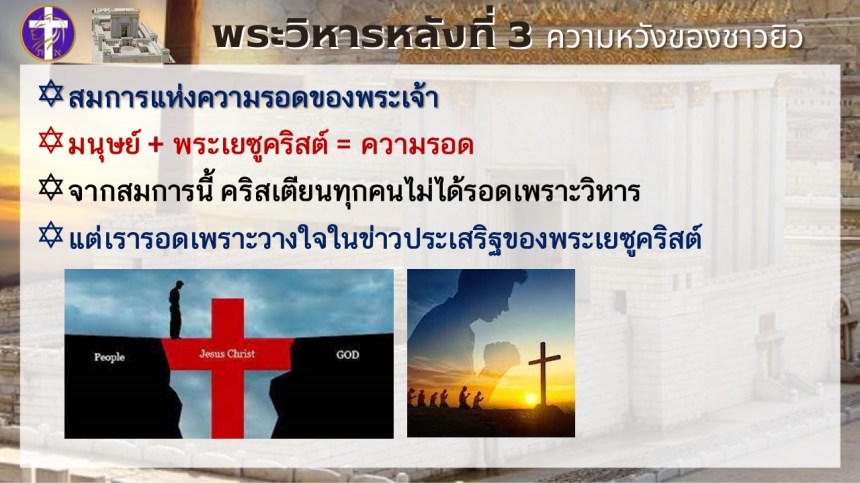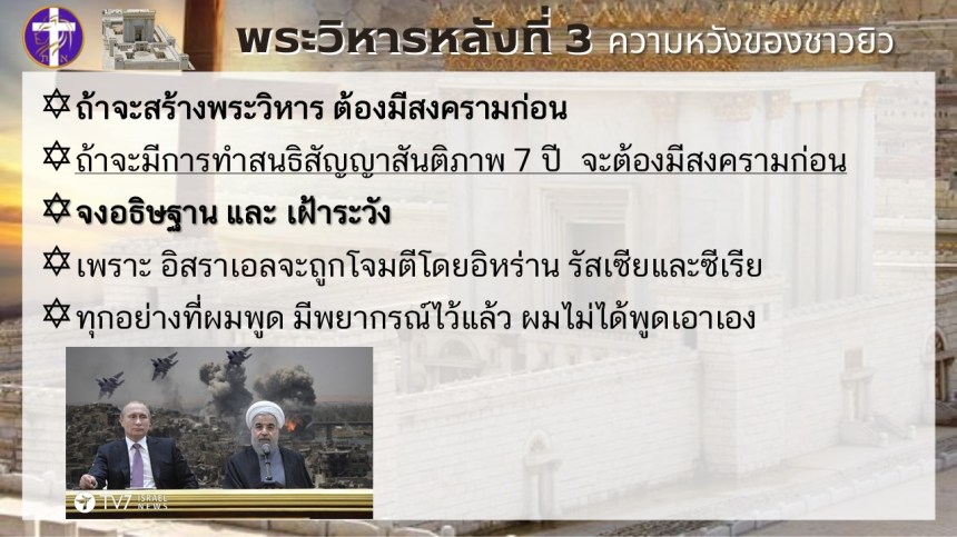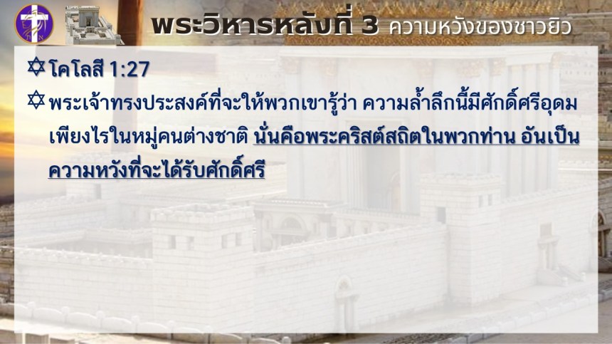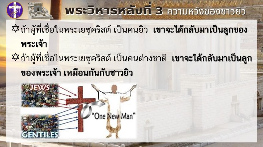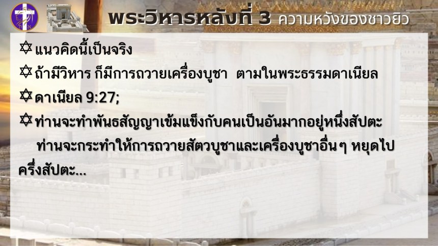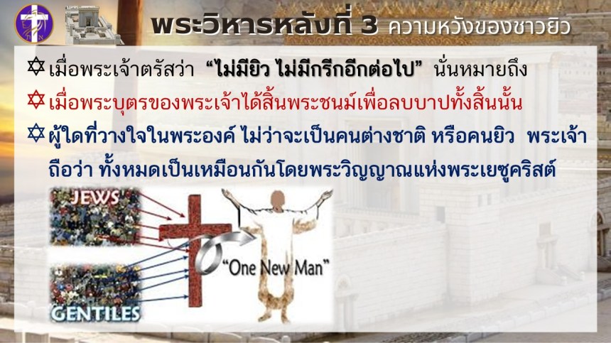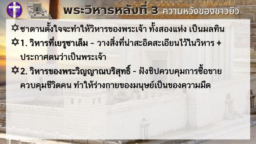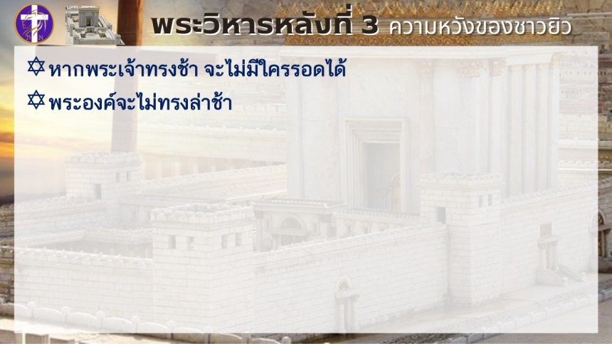 พระวิหารหลังที่ 3 ความหวังของชาวยิว | แต่พระวิหารหลังที่ 4 จะเป็นความหวังของทุกประชาชาติ |