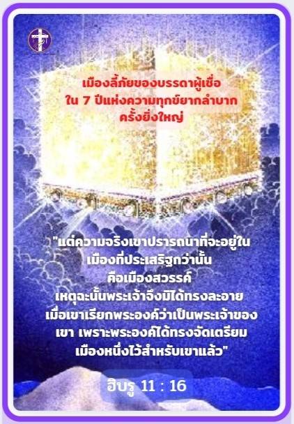 🎯 “แต่ความจริงเขาปรารถนาที่จะอยู่ในเมืองที่ประเสริฐกว่านั้น คือเมืองสวรรค์ เหตุฉะนั้นพระเจ้าจึงมิได้ทรงละอาย เมื่อเขาเรียกพระองค์ว่าเป็นพระเจ้าของเขา เพราะพระองค์ได้ทรงจัดเตรียมเมืองหนึ่งไว้สำหรับเขาแล้ว”