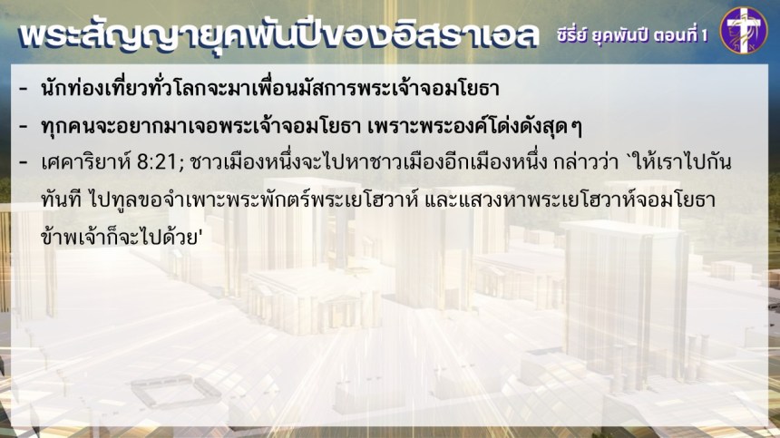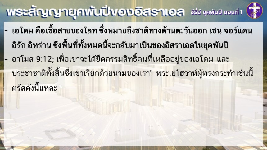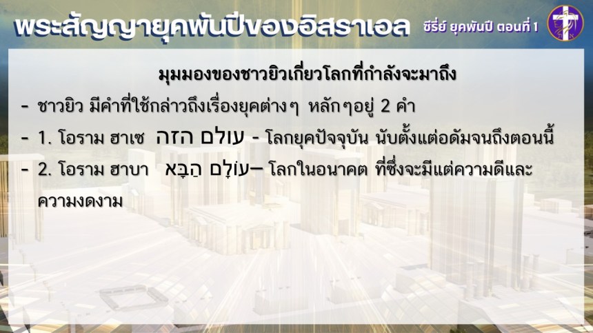 พระสัญญายุคพันปีของชนชาติอิสราเอล | ซี่รี่ย์ ยุคพันปี ตอนที่ 1