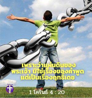 🔸️ “เพราะว่าแผ่นดินของพระเจ้ามิใช่เรื่องของคำพูด แต่เป็นเรื่องฤทธิ์เดช”