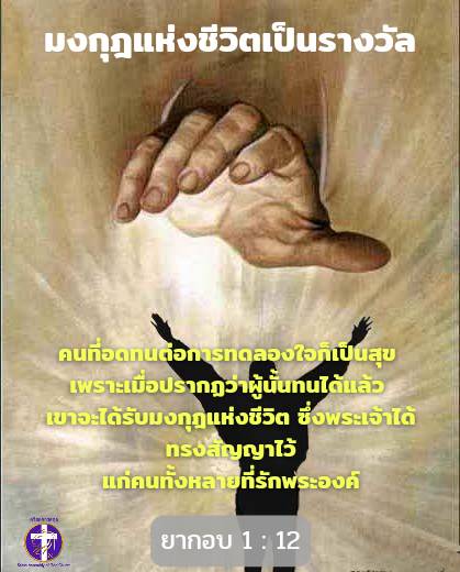 □ อย่าอ่อนแออ่อนไหวกับสถานการณ์ที่เกิดขึ้น จนความเชื่อของเราถดถอย แต่จงรักษาความเชื่อที่เรามีไว้นั้น เพื่อเราจะได้ไปรับเอามงกุฎแห่งชีวิต ที่พระเจ้าจะทรงประทานให้ในอีกไม่นานนี้ เพราะเราได้แข่งขันตามกติกา(ยากอบ 1 : 12)