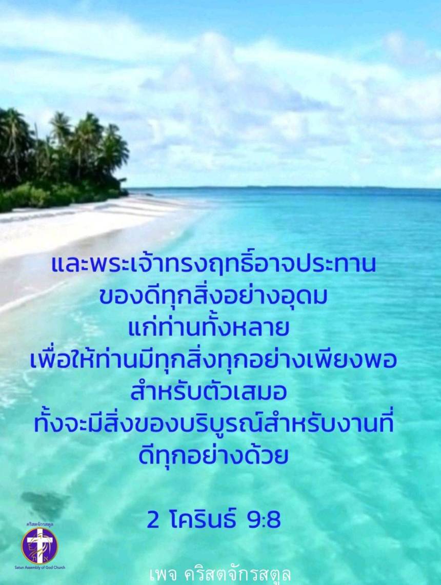 “และพระเจ้าทรงฤทธิ์อาจประทานของดีทุกสิ่งอย่างอุดมแก่ท่านทั้งหลาย เพื่อให้ท่านมีทุกสิ่งทุกอย่างเพียงพอสำหรับตัวเสมอ ทั้งจะมีสิ่งของบริบูรณ์สำหรับงานที่ดีทุกอย่างด้วย”