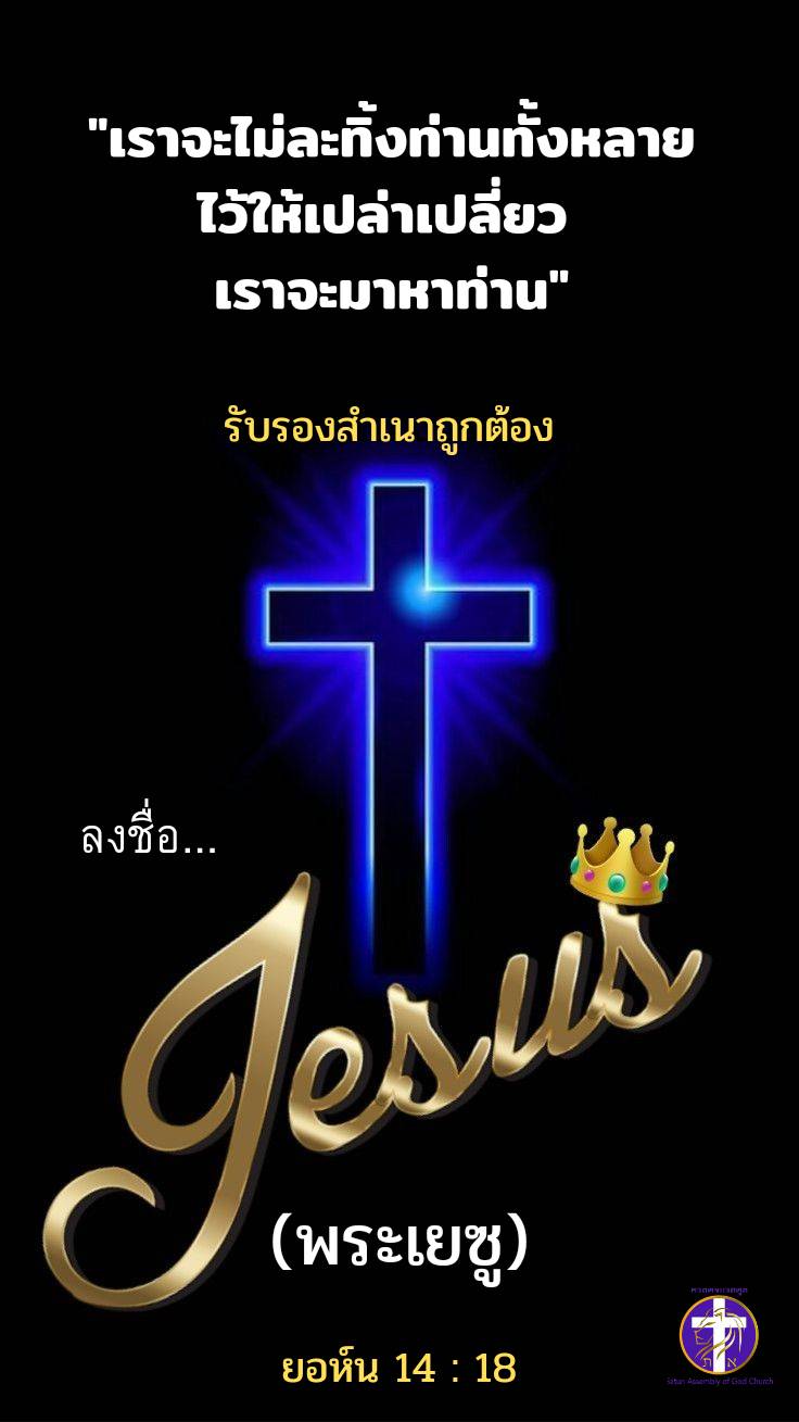 🙋 วันนี้ พระเยซูคริสต์ทรงสัญญาไว้แก่เราใน ยอห์น 14:18 ว่า “เราจะไม่ละทิ้งท่านทั้งหลายไว้ให้เปล่าเปลี่ยว เราจะมาหาท่าน อาเมนนะครับ