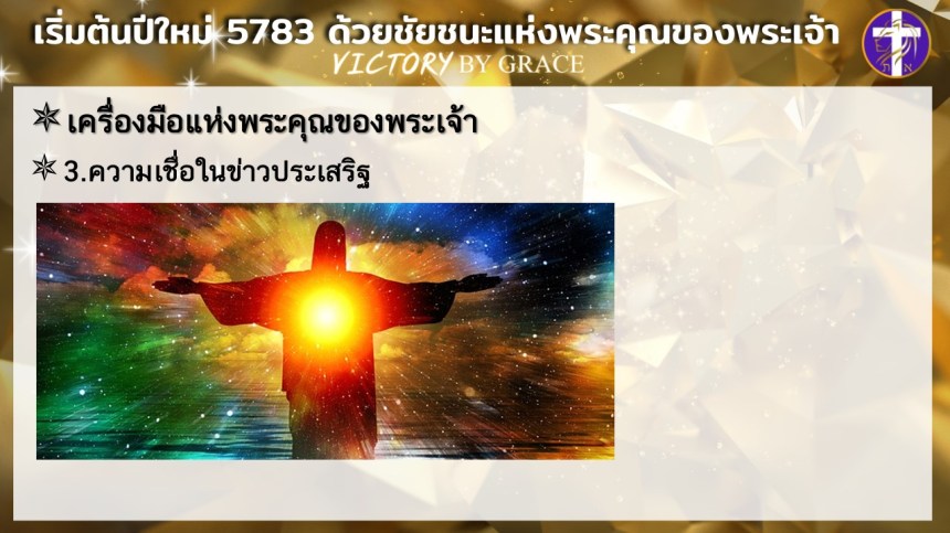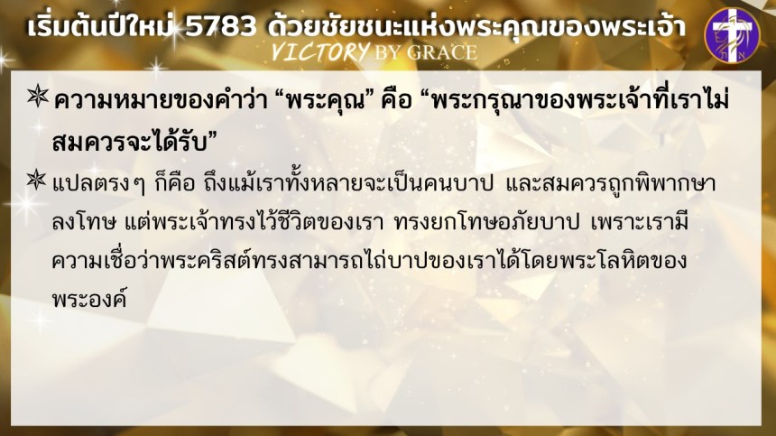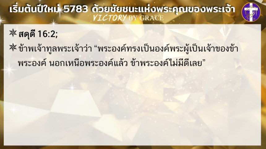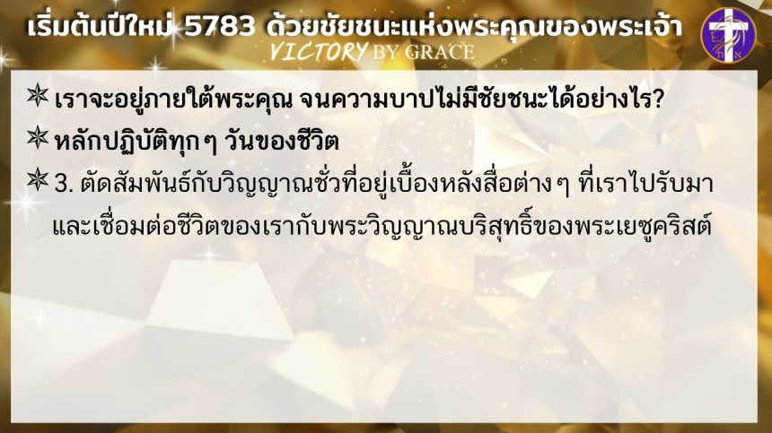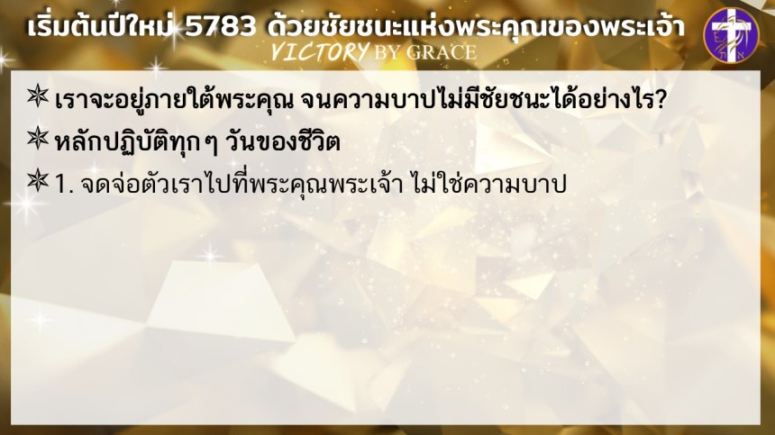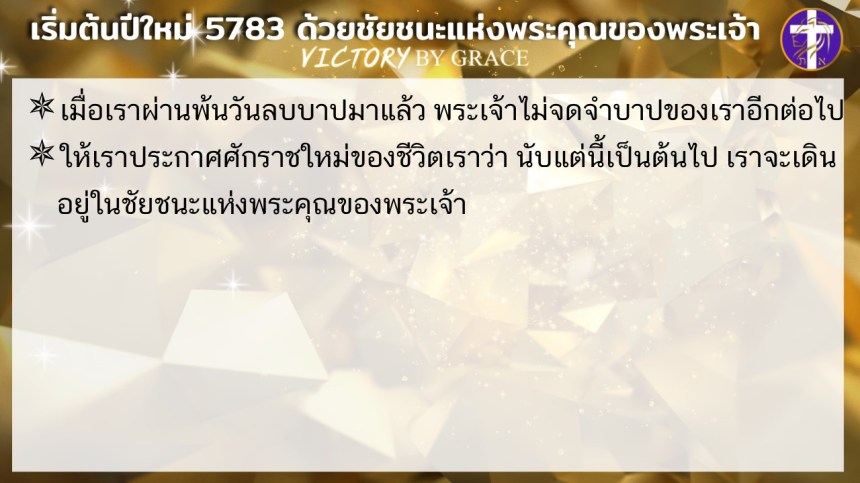 ให้เราประกาศศักราชใหม่ของชีวิตเราว่า นับแต่นี้เป็นต้นไป เราจะเดินอยู่ในชัยชนะแห่งพระคุณของพระเจ้า
