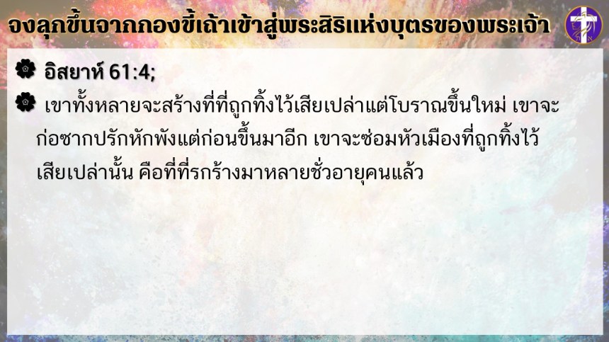 จงลุกขึ้นจากกองขี้เถ้า เข้าสู่พระสิริแห่งบุตรของพระเจ้า