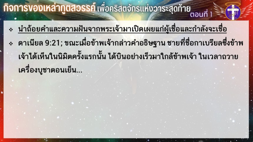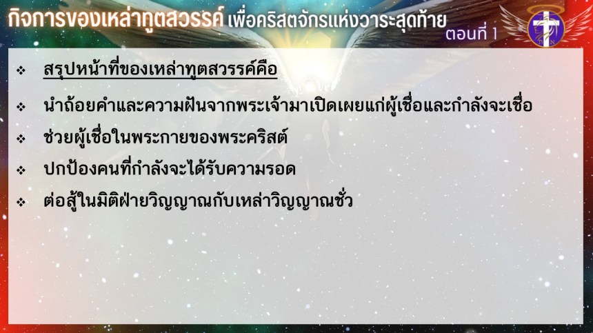 กิจการของเหล่าทูตสวรรค์ เพื่อคริสตจักรแห่งวาระสุดท้าย ตอนที่ 1 | เปิดเผยความล้ำลึกของโลกฝ่ายวิญญาณ