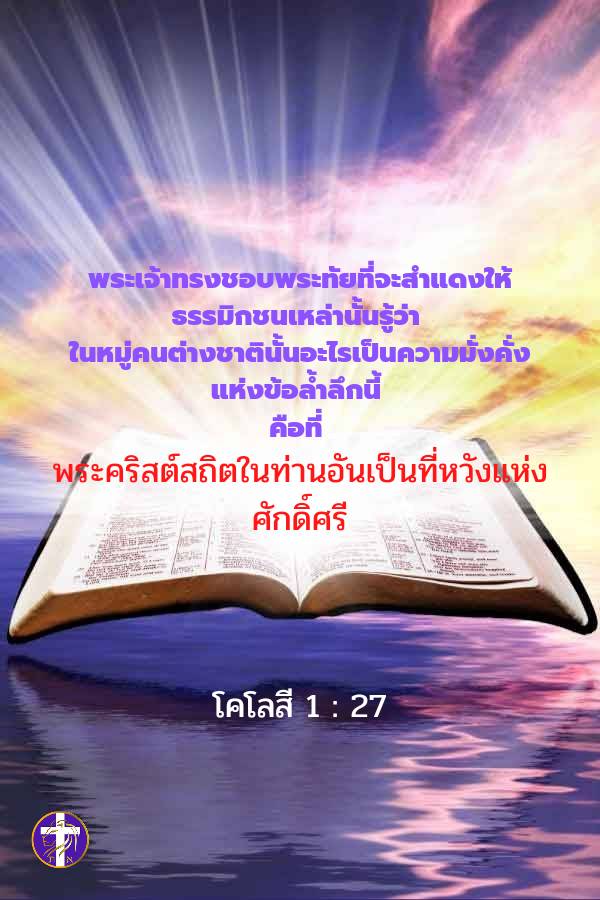 🎯 “พระเจ้าทรงชอบพระทัยที่จะสำแดงให้ธรรมิกชนเหล่านั้นรู้ว่า ในหมู่คนต่างชาตินั้นอะไรเป็นความมั่งคั่งแห่งข้อล้ำลึกนี้ คือที่พระคริสต์ทรงสถิตในท่านอันเป็นที่หวังแห่งศักดิ์ศรี”