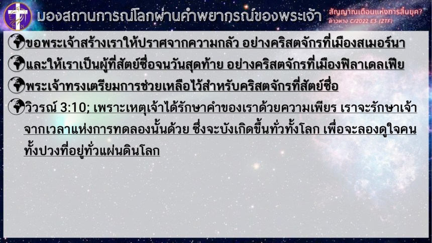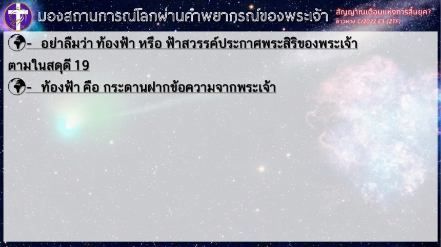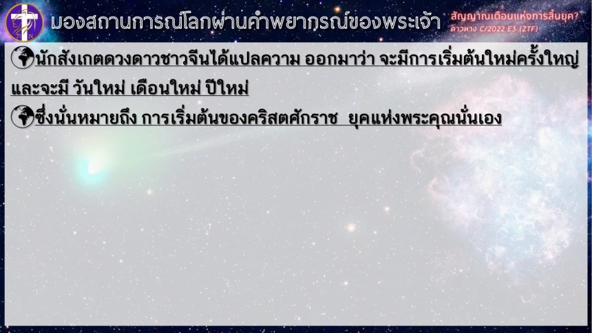 มองสถานการณ์โลกผ่านคำพยากรณ์ของพระเจ้า (ตอนพิเศษ) | เบิกเนตรความหมายของดาวหาง C/2022 E3 (ZTF)