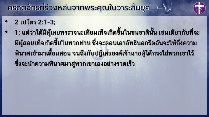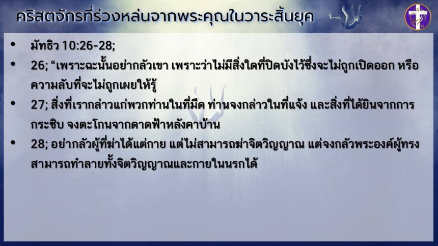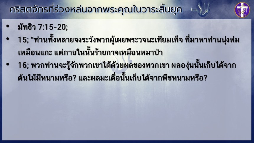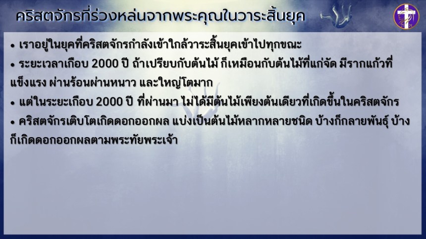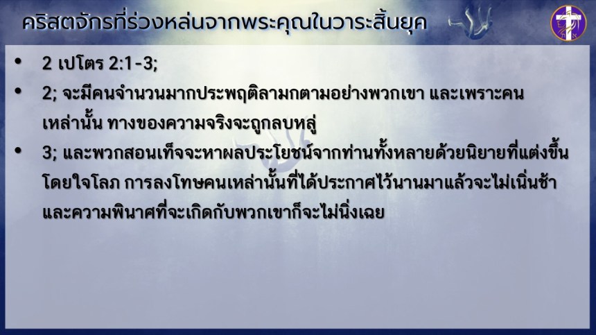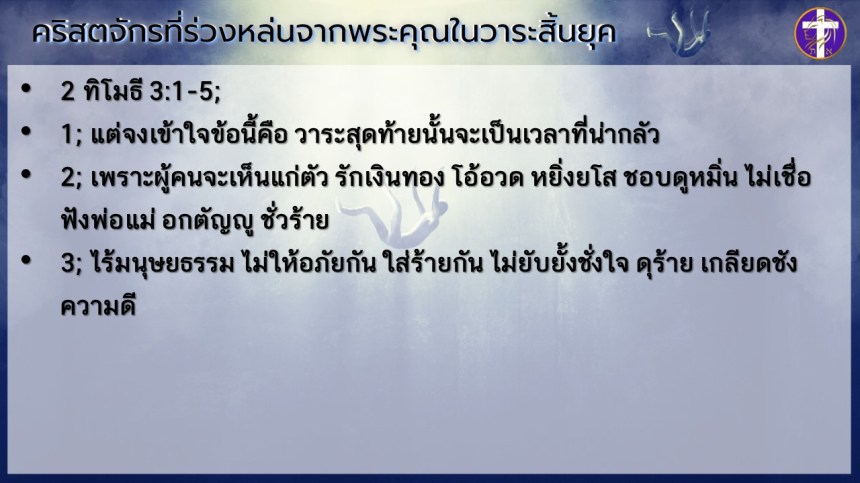 คริสตจักรที่ร่วงหล่นจากพระคุณในวาระสิ้นยุค | เริ่มต้นด้วยพระวิญญาณ ต้องจบด้วยพระวิญญาณ !! |