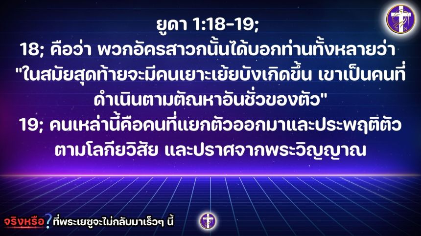 จริงหรือ? ที่พระเยซูจะไม่กลับมาเร็วๆ นี้ !?!