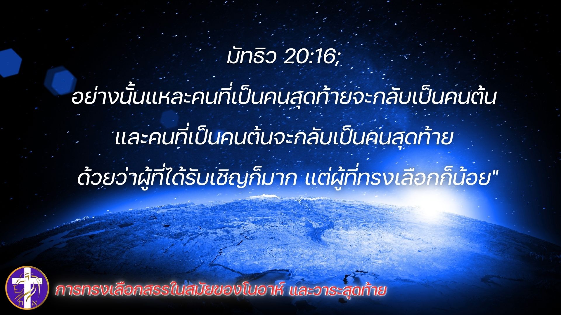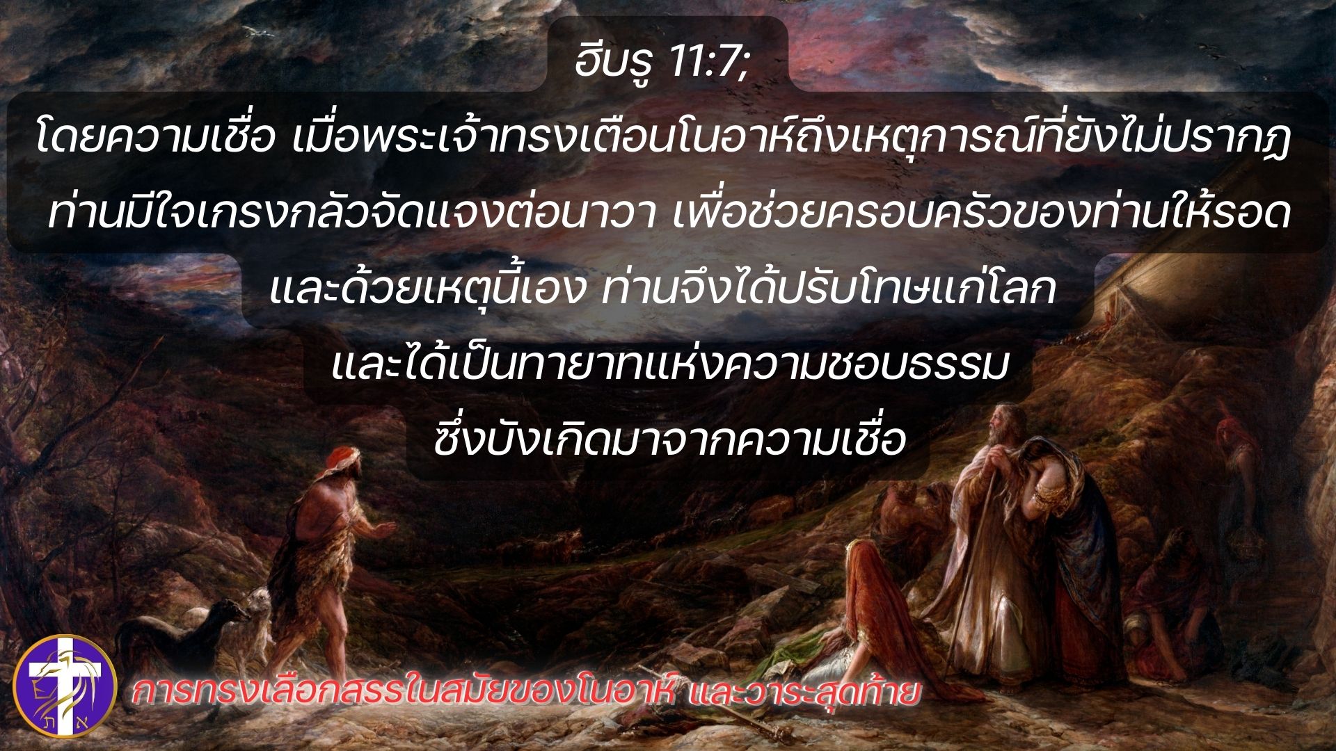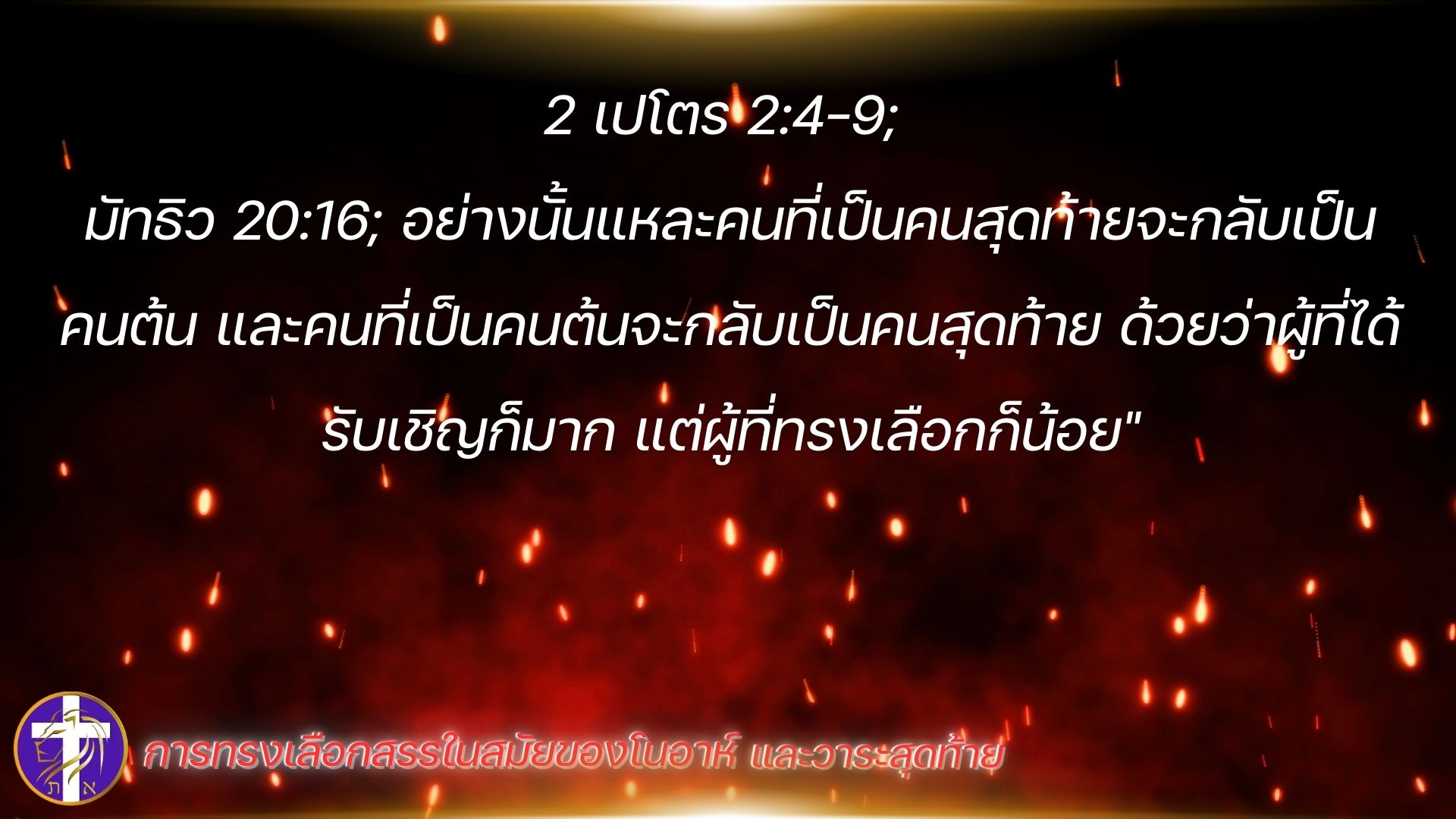 การทรงเลือกสรรในสมัยของโนอาห์ และวาระสุดท้าย |