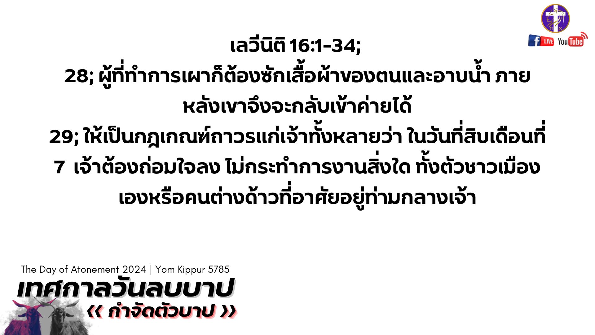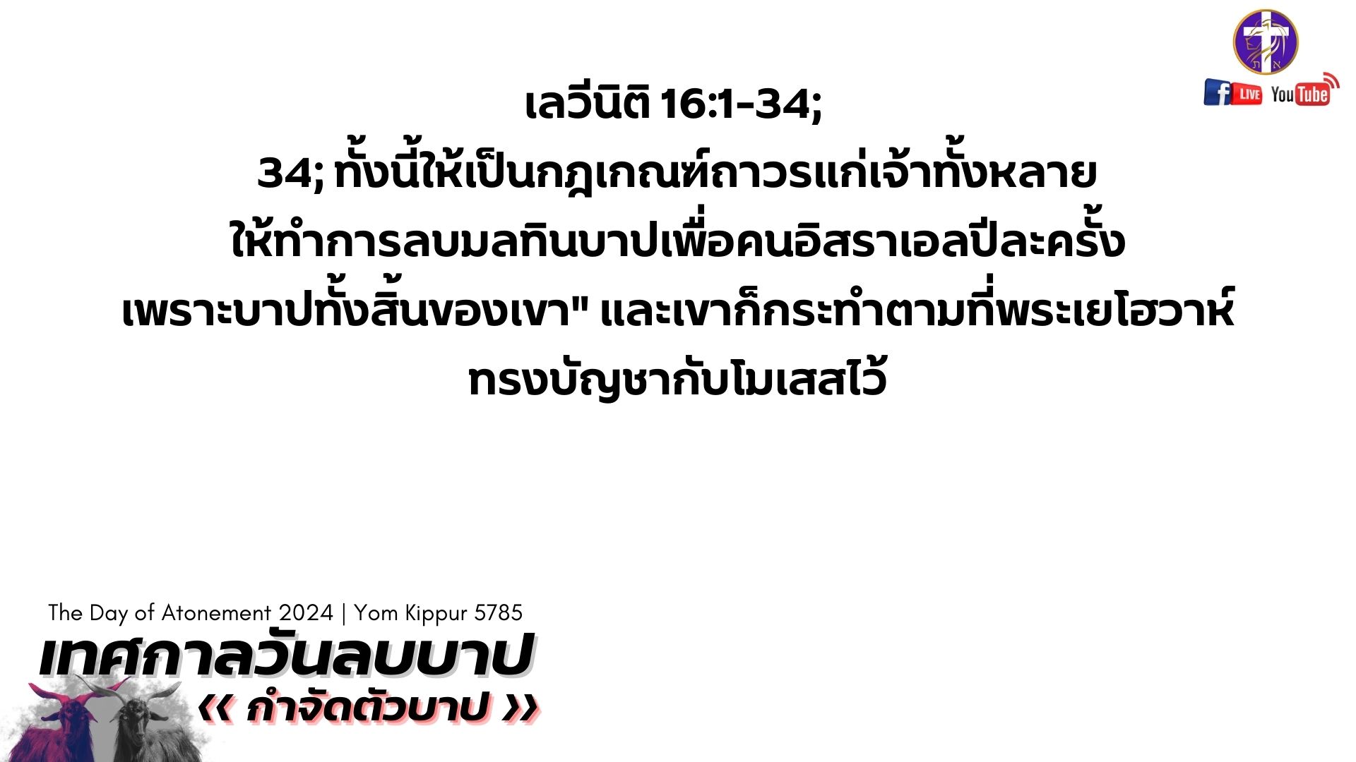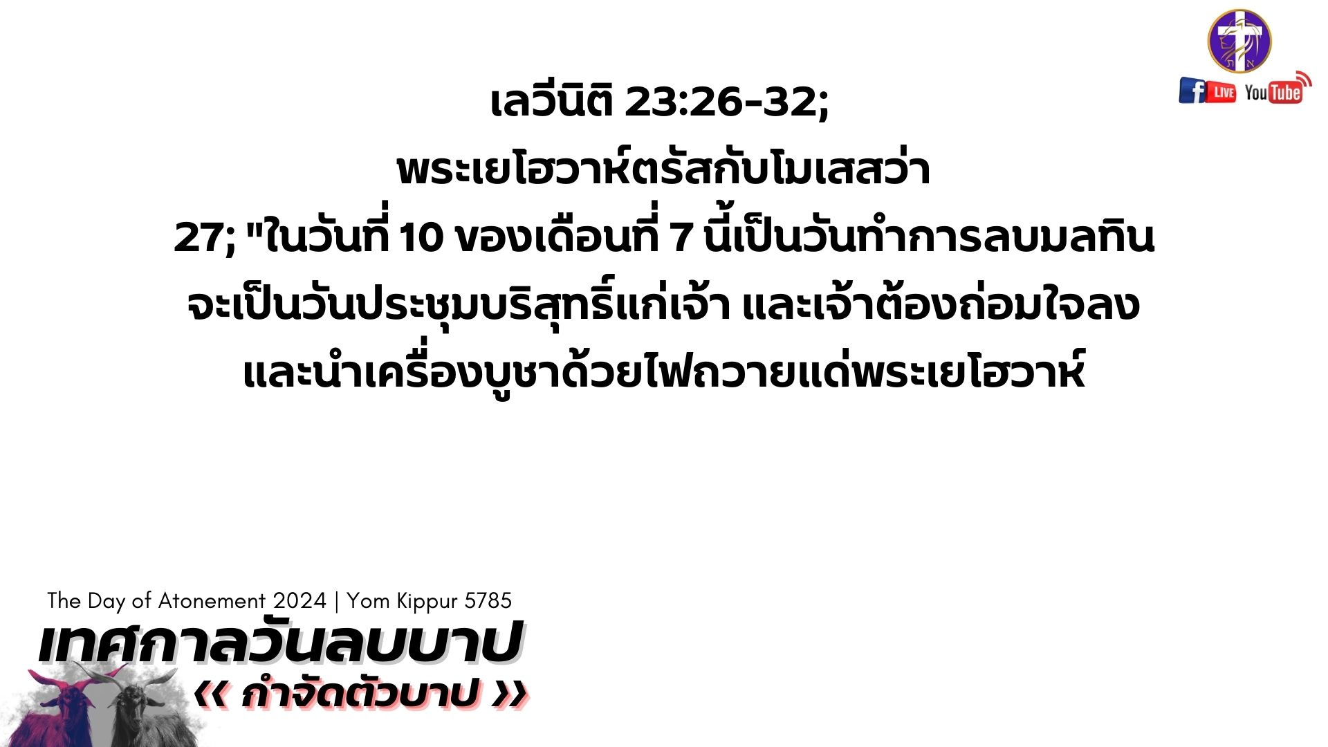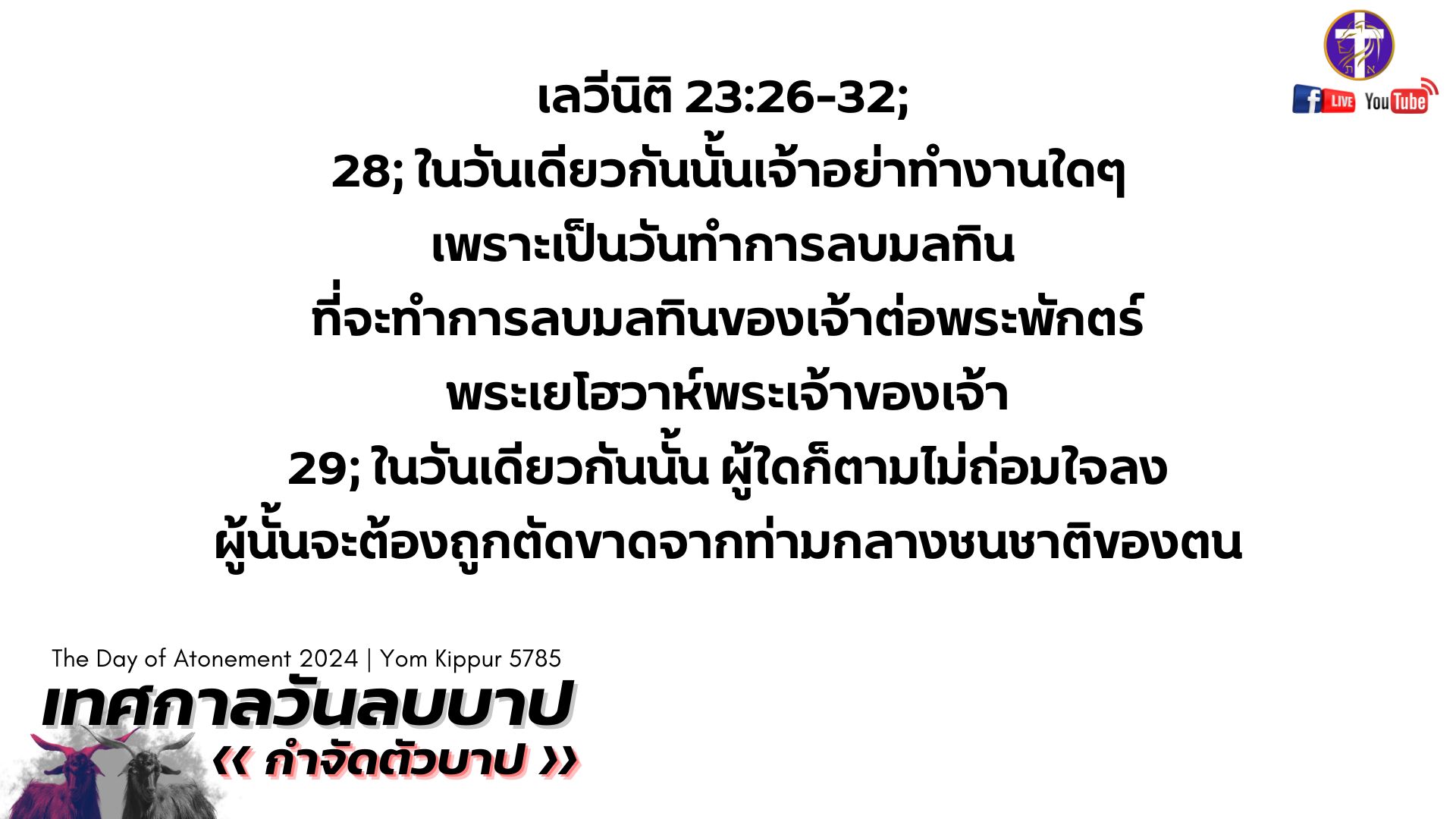 💓Live สด!! 🔥เทศกาลวันลบบาป 🕊️| Yom Kippur 5785 | เทศกาลของพระเจ้า | วันศุกร์ที่ 11 ตุลาคม 2024