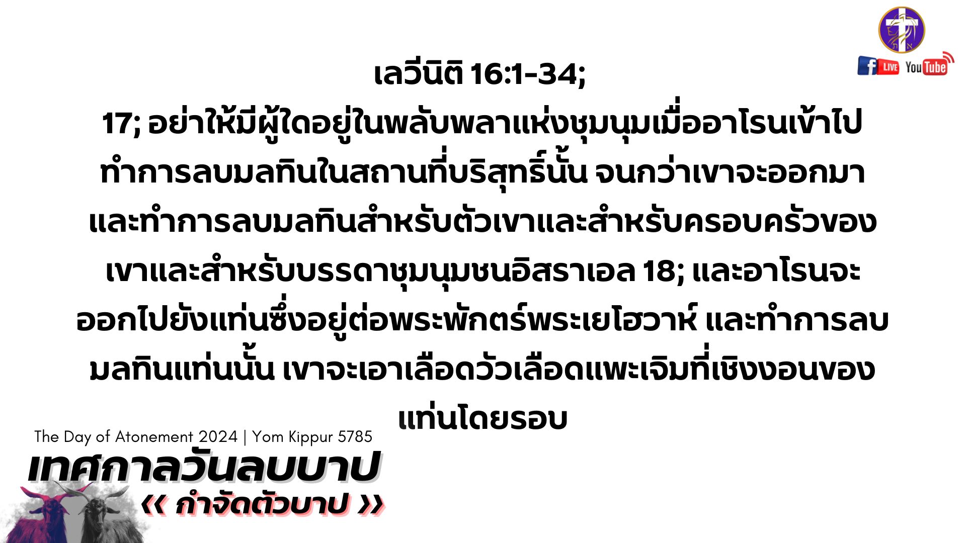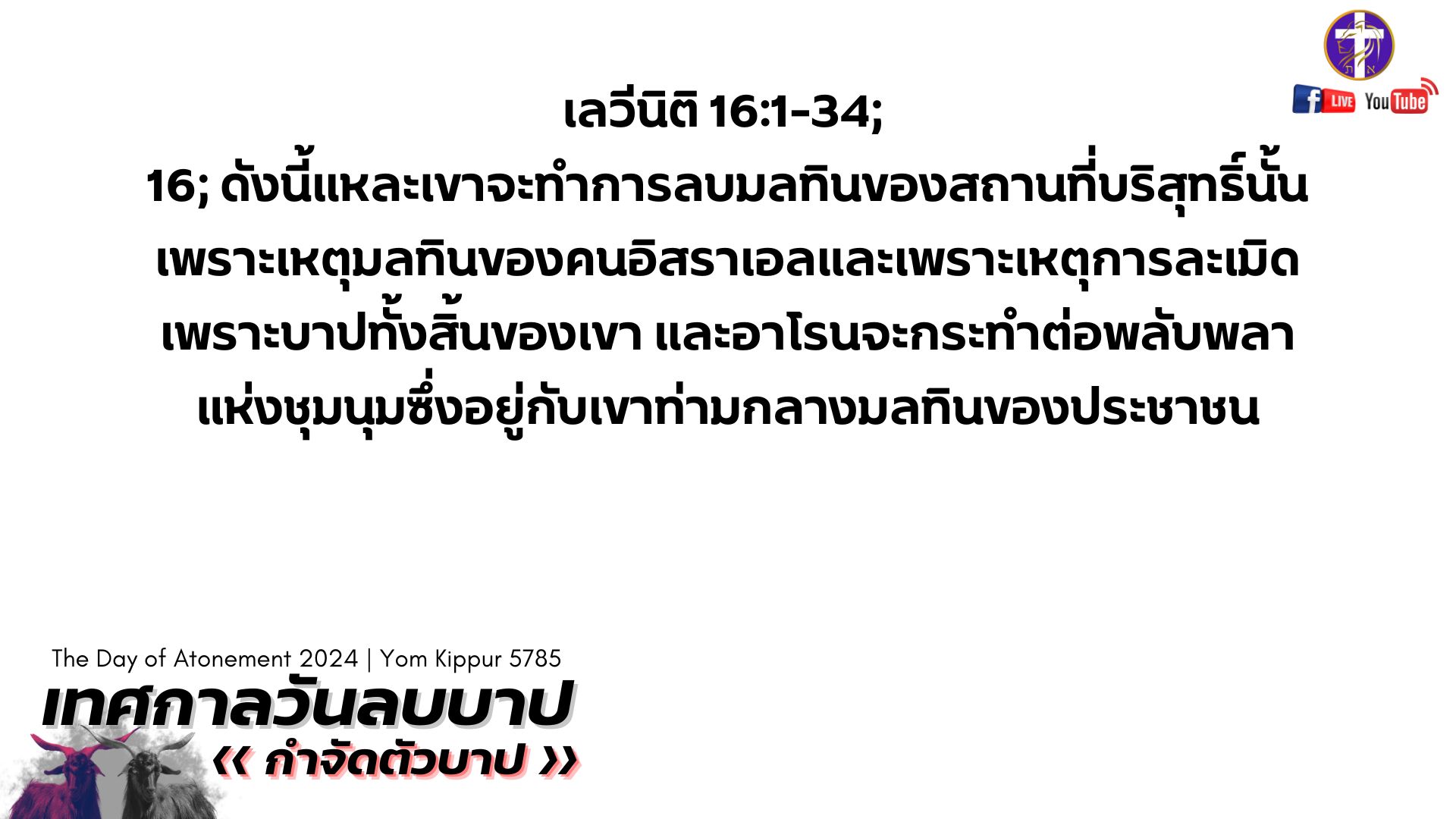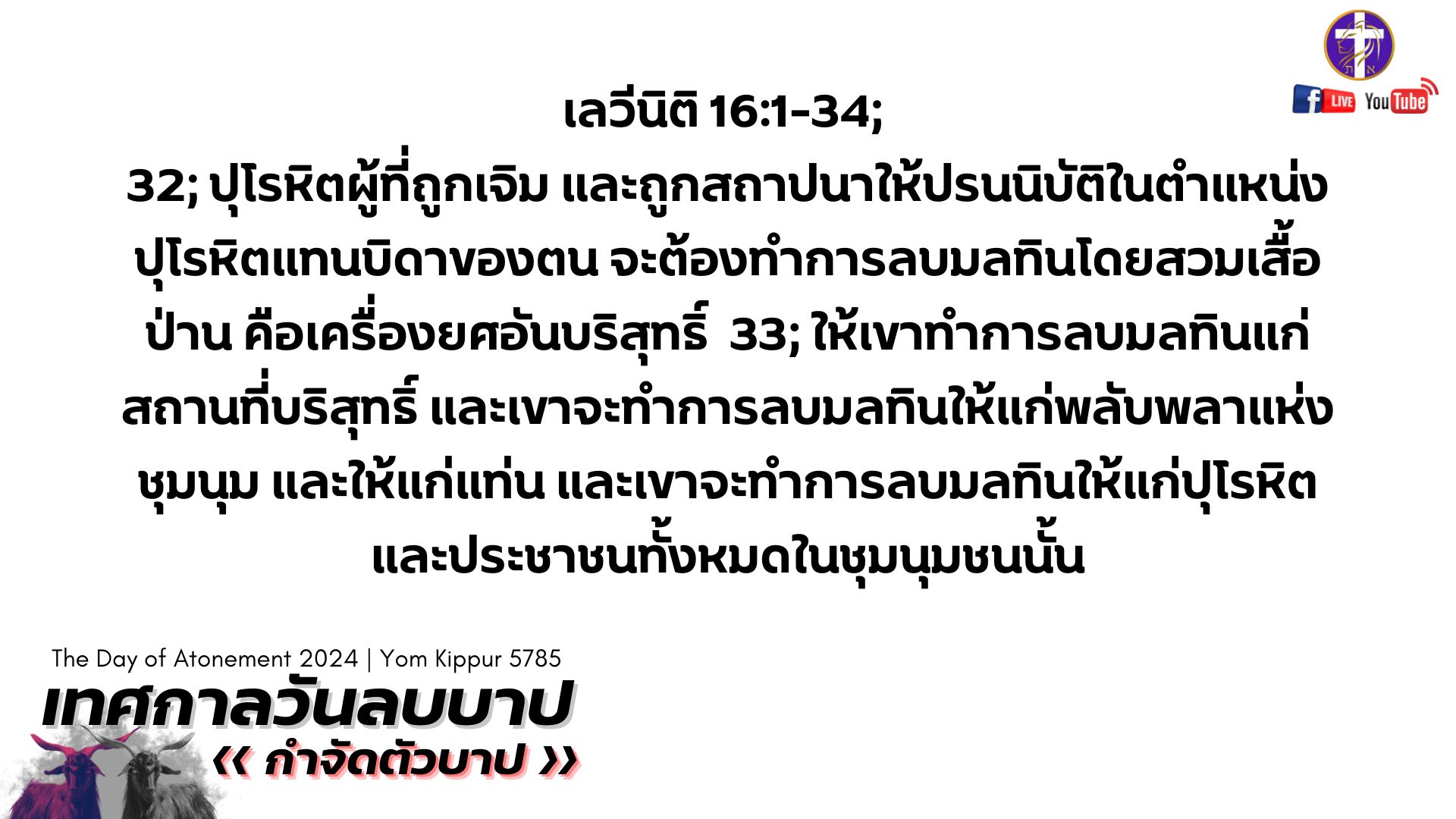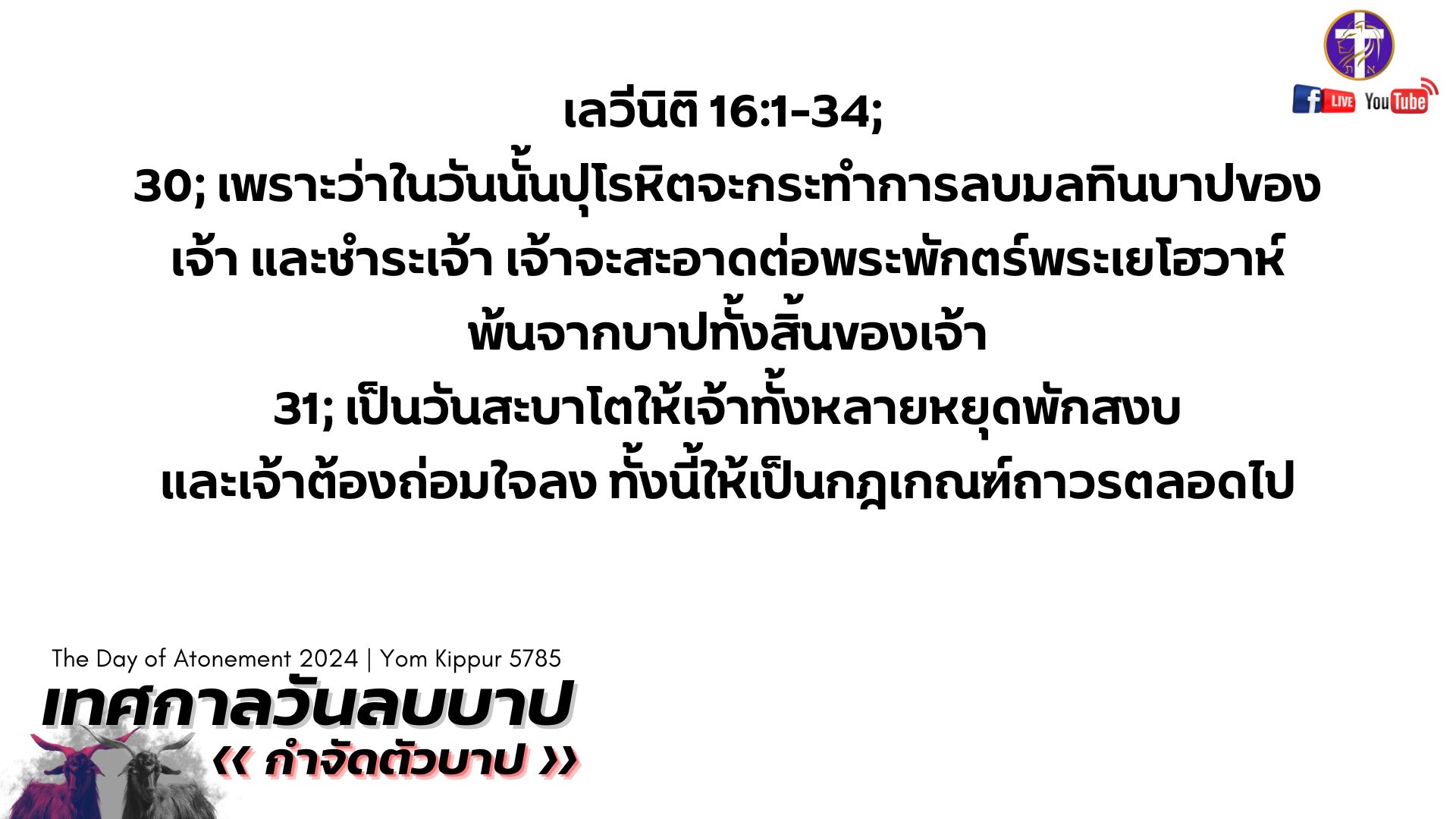 💓Live สด!! 🔥เทศกาลวันลบบาป 🕊️| Yom Kippur 5785 | เทศกาลของพระเจ้า | วันศุกร์ที่ 11 ตุลาคม 2024