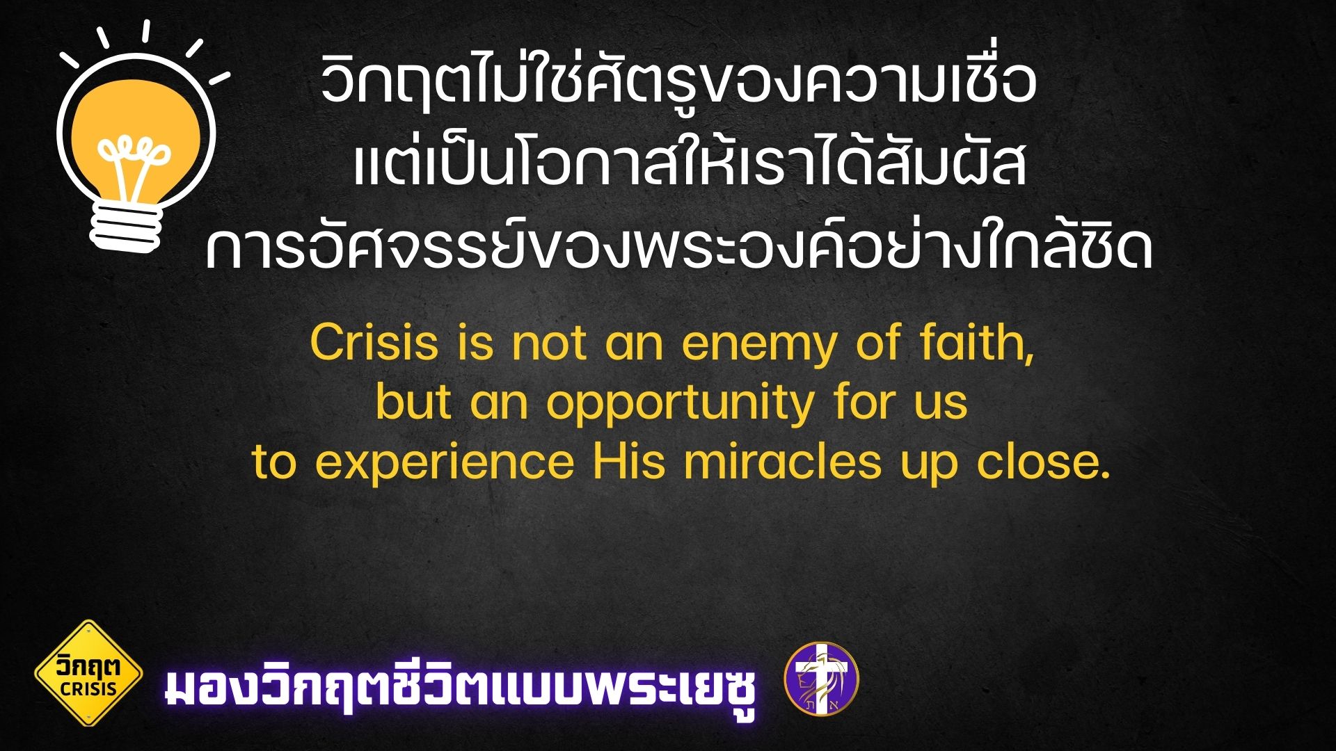 มองวิกฤตชีวิตแบบพระเยซู | ปัญหาและวิกฤตที่เกิดขึ้น ก็เพื่อที่จะทำให้ท่าน… |
